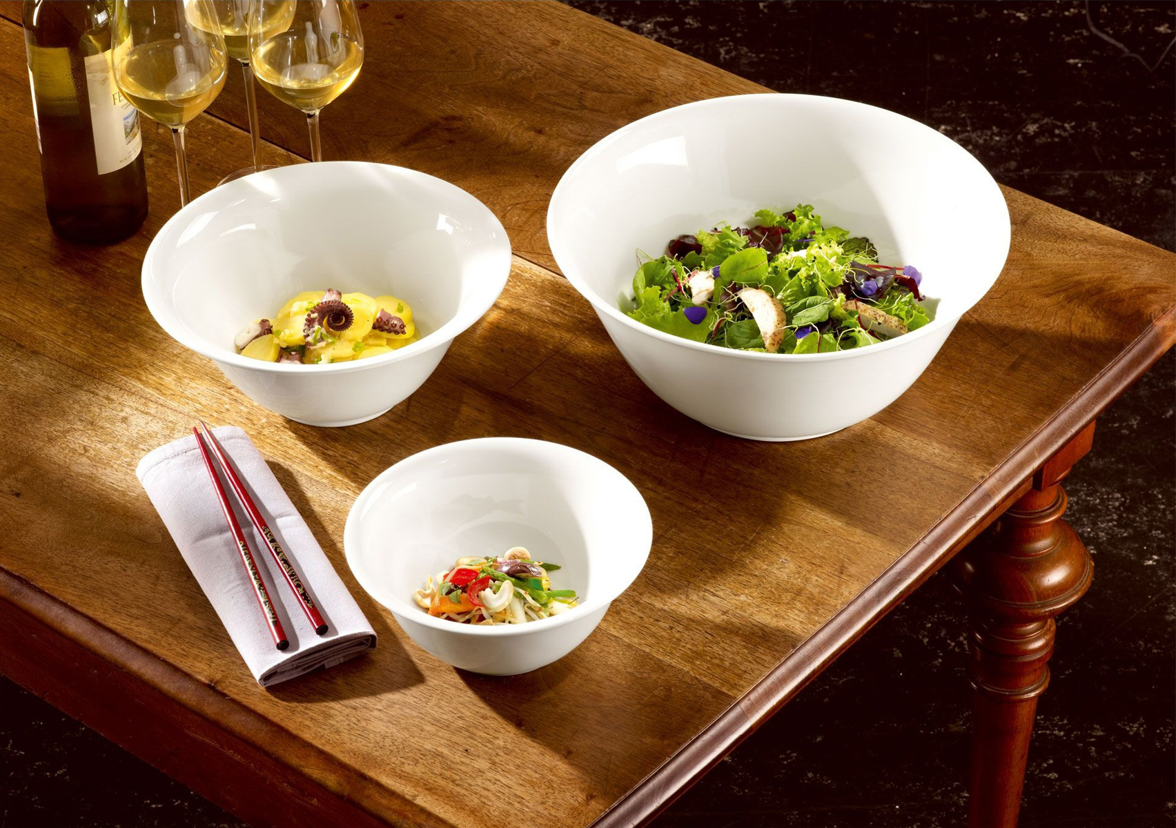 W skład kolekcji wchodzi zestaw wszystkich niezbędnych naczyń: sosjerki, kieliszki do jajek, naczynia na masło, bulionówki, wazy, dzbanki, cukiernice, misy, mleczniki, kubki, filiżanki do espresso, dużej kawy i herbaty, talerze głębokie i płaskie różnego rodzaju oraz spodki.