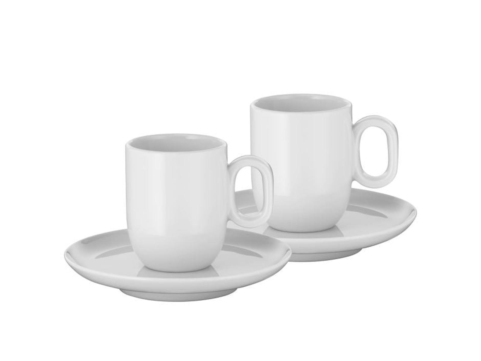 Elegancki 4-elementowy zestaw do kawy składający się z 2-óch filiżanek o pojemności 60 ml z podstawkami.