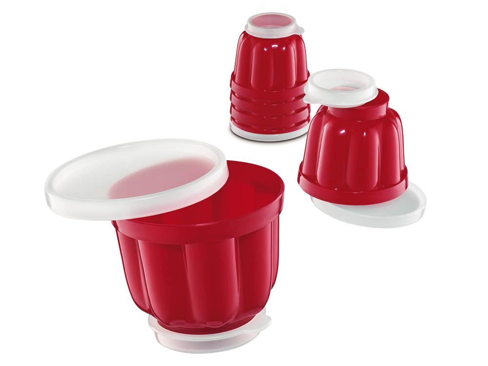 Praktyczny zestaw foremek na pudding z dwoma denkami. Każde denko wyposażone jest w zdejmowaną pokrywkę, dzięki której deser szybciej wystygnie. Komplet foremek umożliwi nadanie puddingom i galaretkom interesujących kształtów.