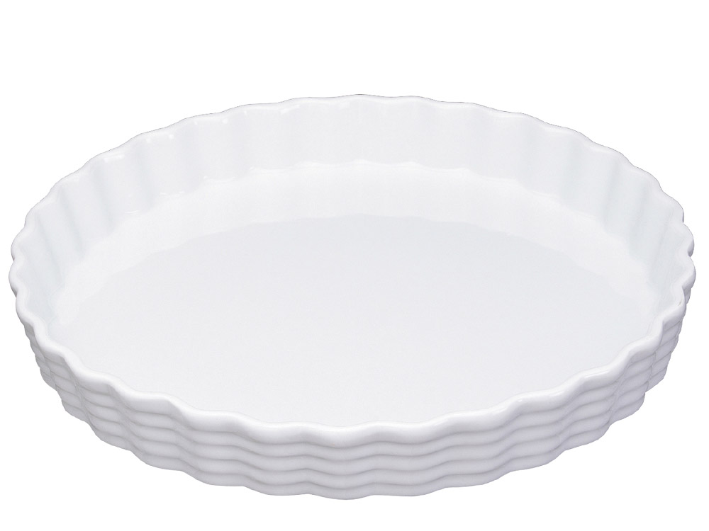 Oryginalne ceramiczne okrągłe naczynie do pieczenia sprawdzi się doskonale do tarty lub pizzy.