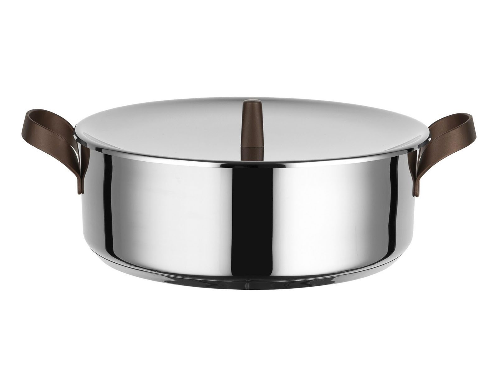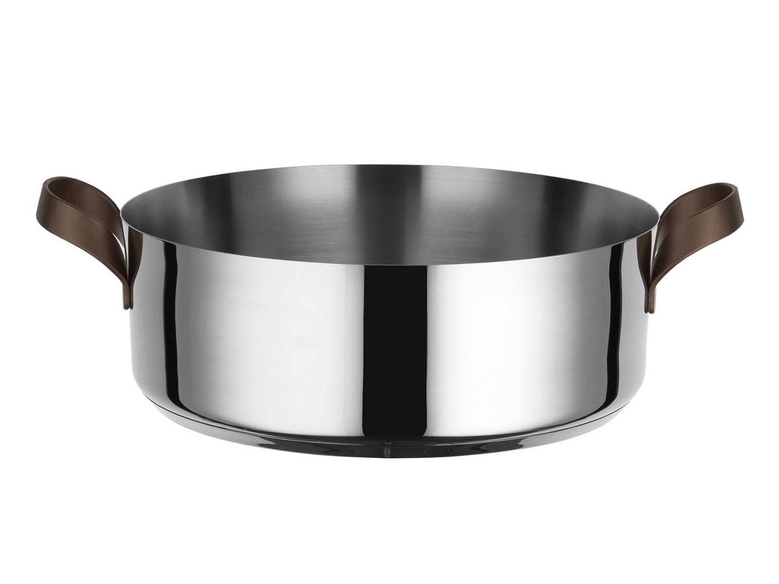Alessi Edo to jedna z flagowych kolekcji sprzętów i akcesoriów kuchennych. Kolekcja garnków Edo to przepiękne garnki zaprojektowane dla Alessi przez Patricię Urquiola. Garnki wykonane są z najwyższej jakości stali nierdzewnej 18/10. Grube dno doskonale rozprowadzające ciepło wykonane jest również ze stali, co pozwala na korzystanie również z indukcji. Charakterystycznym motywem wzorniczym są uchwyty w kształcie zawiniętych wstążek w kolorze pięknego stonowanego brązu - kolor uzyskany jest dzięki innowacyjnej technice PVD, Kształt uchwytów trudno nie skojarzyć np ze skórzanymi uchwytami lub z włoskim makaronem tagliatelle lub papardelle, co sprawia że gotowanie w naczyniach Edo przywodzi na myśl włoską sztukę kulinarną