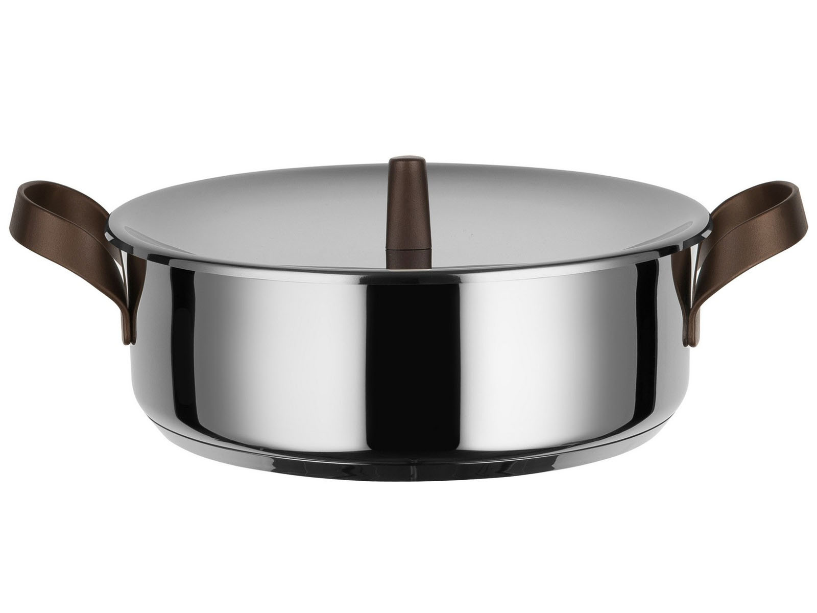 Alessi Edo to jedna z flagowych kolekcji sprzętów i akcesoriów kuchennych. Kolekcja garnków Edo to przepiękne garnki zaprojektowane dla Alessi przez Patricię Urquiola. Garnki wykonane są z najwyższej jakości stali nierdzewnej 18/10. Grube dno doskonale rozprowadzające ciepło wykonane jest również ze stali, co pozwala na korzystanie również z indukcji. Charakterystycznym motywem wzorniczym są uchwyty w kształcie zawiniętych wstążek w kolorze pięknego stonowanego brązu - kolor uzyskany jest dzięki innowacyjnej technice PVD, Kształt uchwytów trudno nie skojarzyć np ze skórzanymi uchwytami lub z włoskim makaronem tagliatelle lub papardelle, co sprawia że gotowanie w naczyniach Edo przywodzi na myśl włoską sztukę kulinarną
