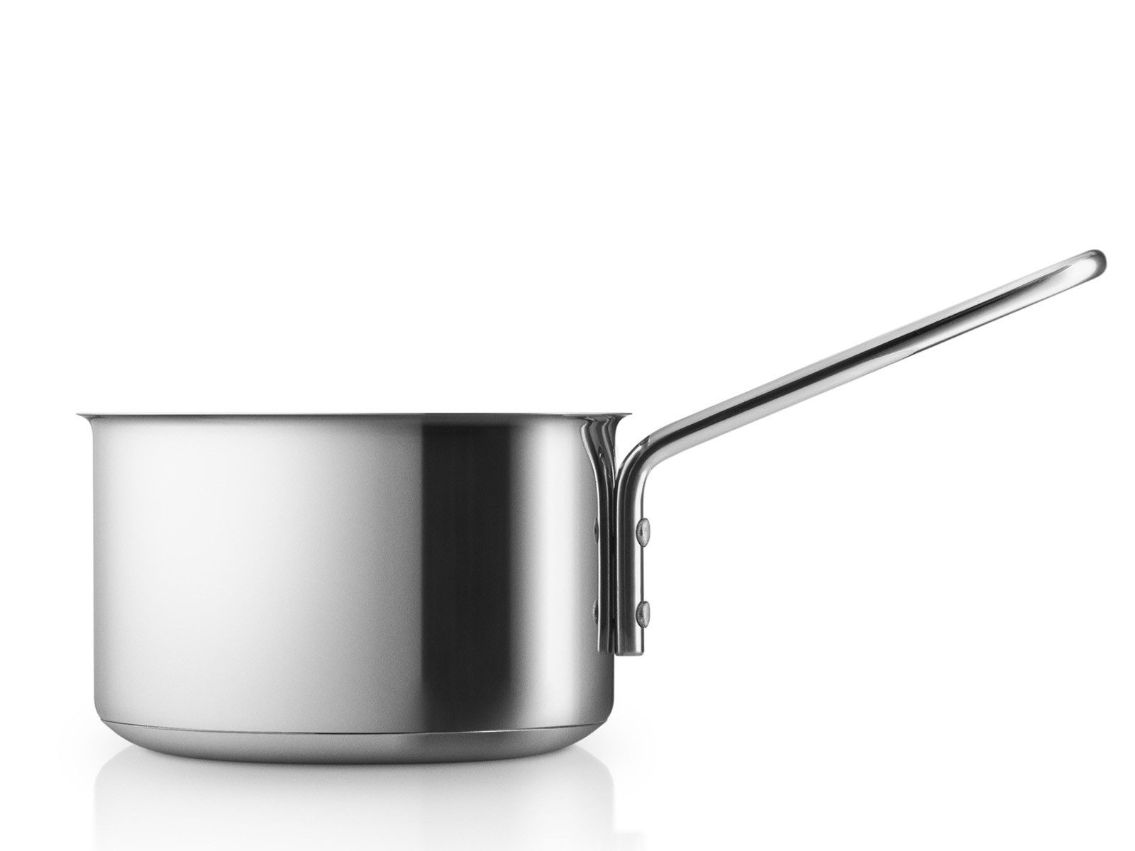 Garnki i patelnie z kolekcji Eva Solo Trio posiadają dno typu sandwich z aluminiowym rdzeniem zapewniającym szybkie i optymalne rozprowadzanie ciepła po dnie oraz bokach.