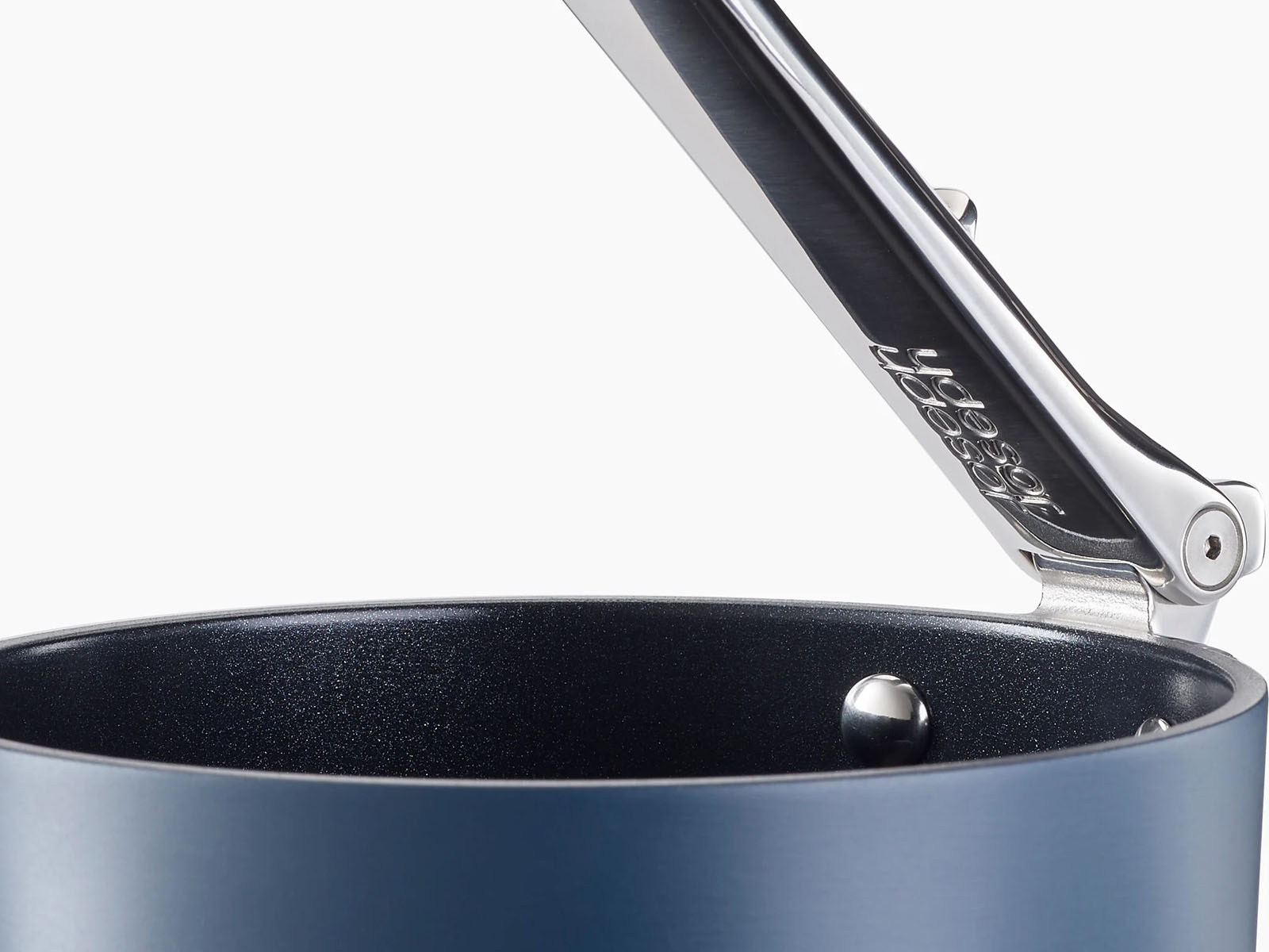 Joseph Joseph Space to wyjątkowa i jednocześnie niebywale praktyczna i funkcjonalna kolekcja garnków i patelni. To co wyróżnia kolekcję Space to nowatorski i opatentowany system składanych uchwytów zarówno garnków, rondli jak i pokrywek. Jednym ruchem naczynia zmniejszają swój rozmiar, a dzięki możliwości przechowywania garnków 'jeden w drugim' przestrzeń potrzebna do przechowywania ograniczona jest o od 40% do 70% w zależności od rodzaju naczyń.