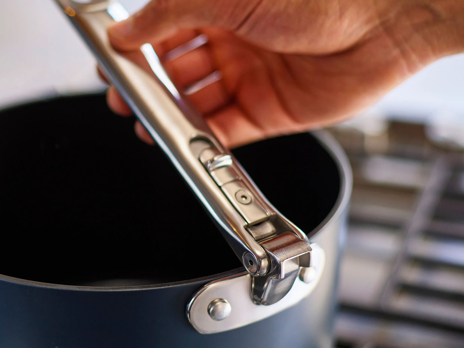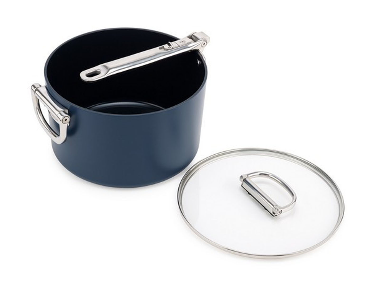 Ekskluzywny rondel ze składanym uchwytem i pokrywką