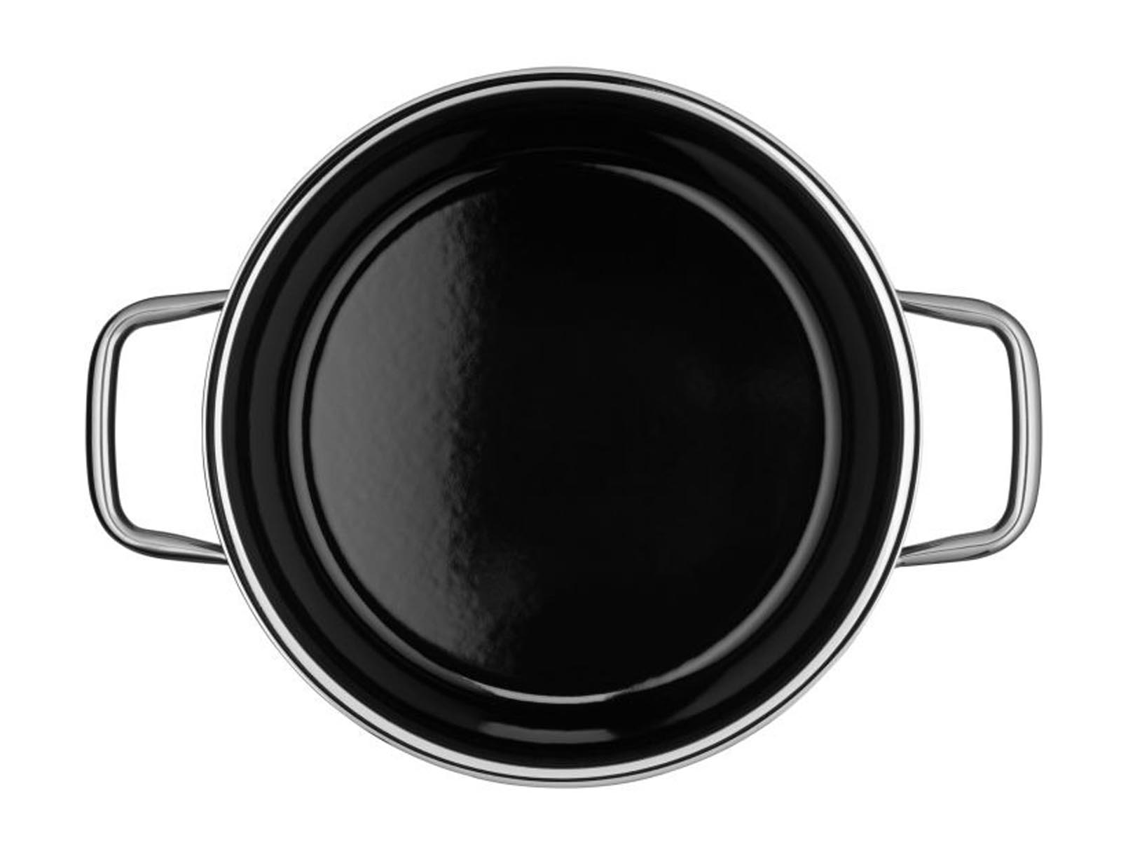 W zestawie garnek posiada elegancką wysokiej jakości szklaną pokrywkę z uchwytem i brzegiem ze stali nierdzewnej, pozwalającą w każdej chwili zajrzeć do wnętrza garnka.