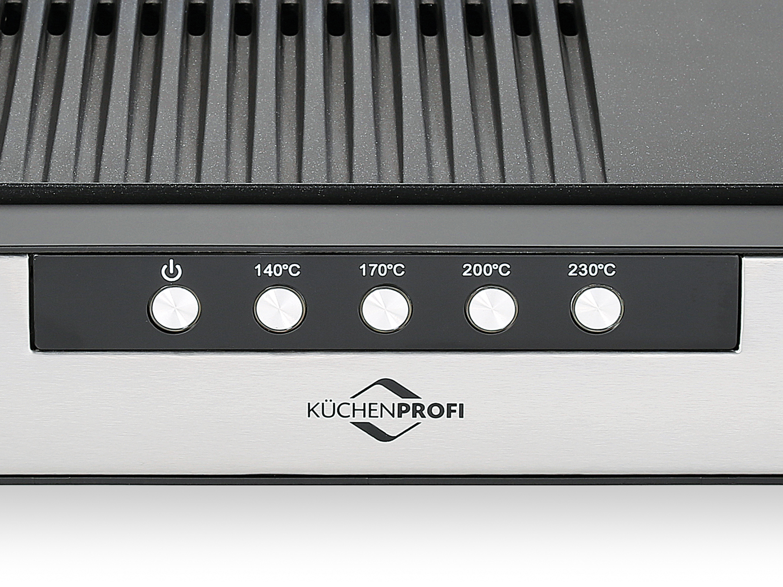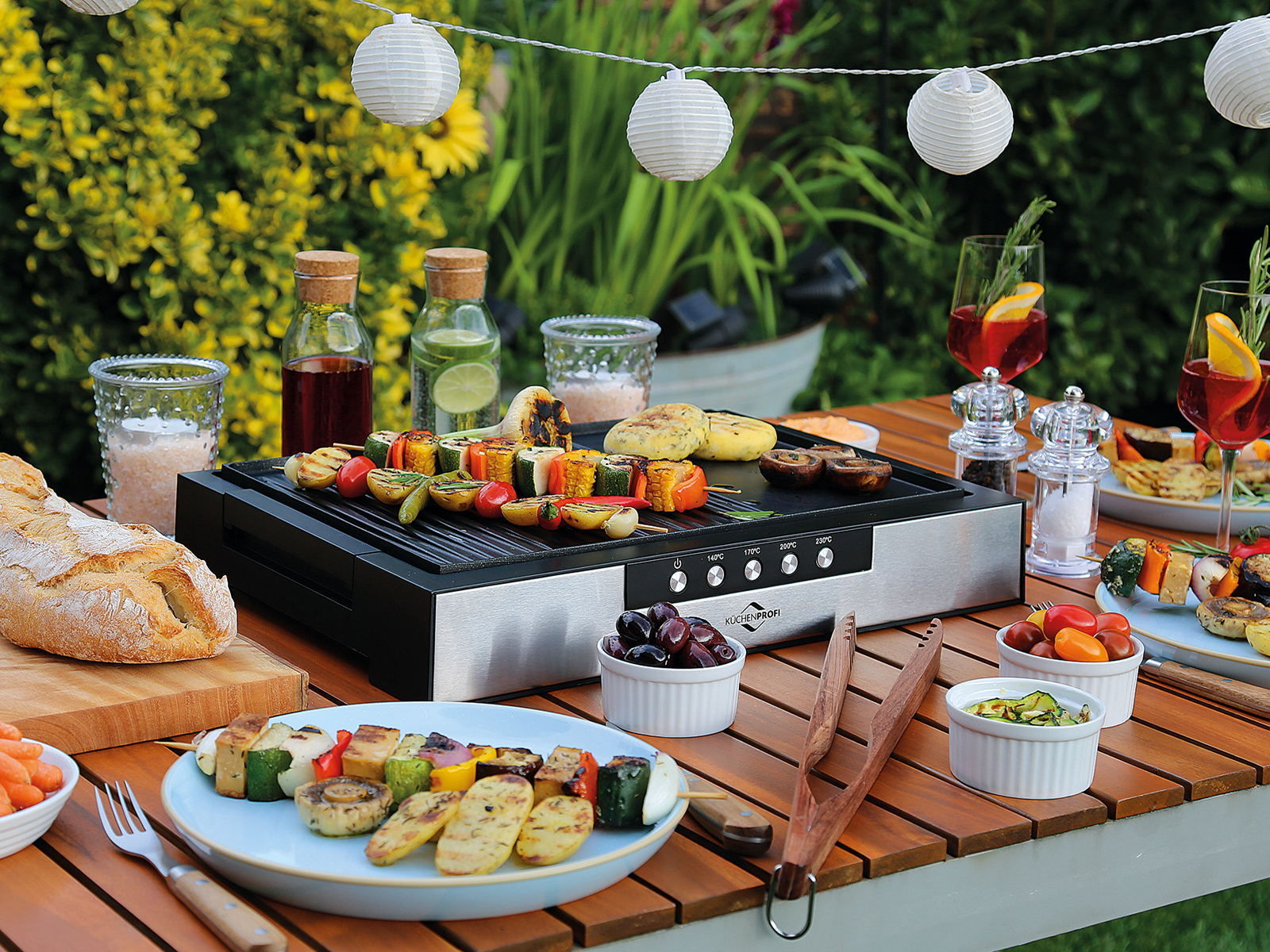 Kuchenprofi Style to bardzo praktyczny, kompaktowy, a jednocześnie elegancki stołowy grill elektryczny, umożliwia bezpieczne grillowanie produktów na kuchennym blacie. jadalnianym stole zarówno w pomieszczeniach jak i w plenerze. Grill jest idealnym rozwiązaniem dla smakoszy tęskniących za sezonem grillowym lub w sezonie jako podręczny grill na ogrodowym stole.