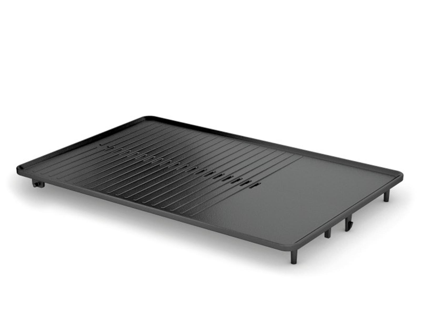 Obudowa grilla w prostym prostokątnym kształcie na stabilnych nóżkach, wykonana z wytrzymałej odpornej na zarysowania stali nierdzewnej 18/10 Cromargan® z elementami z tworzywa sztucznego.