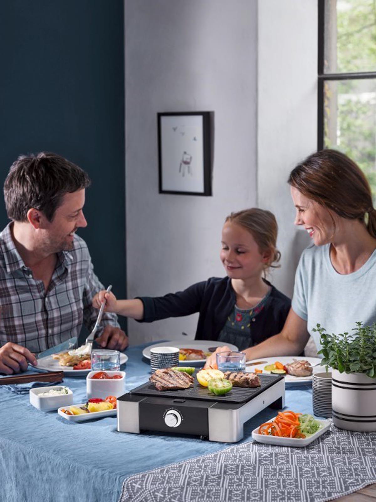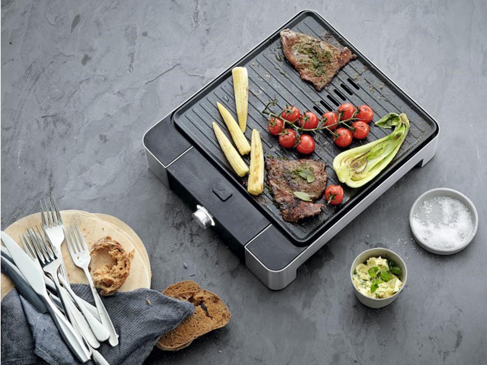 Stołowy grill Lono to idealne połączenie wydajności, atrakcyjnego designu i trwałości typowej dla urządzeń kuchennych WMF.