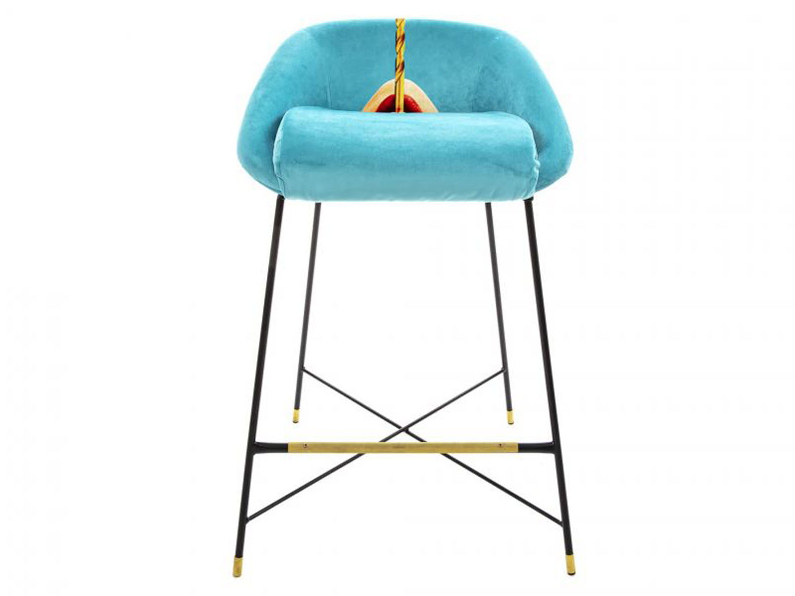 Hockery z kolekcji Seletti Toiletpaper to nawiązujące formą stylistyczną do lat 50. wygodne tapicerowane wysokie stołki, które idealnie nadają się do siedzenia przy barach i wysokich stołach. Hockery posiadają metalowe nóżki.