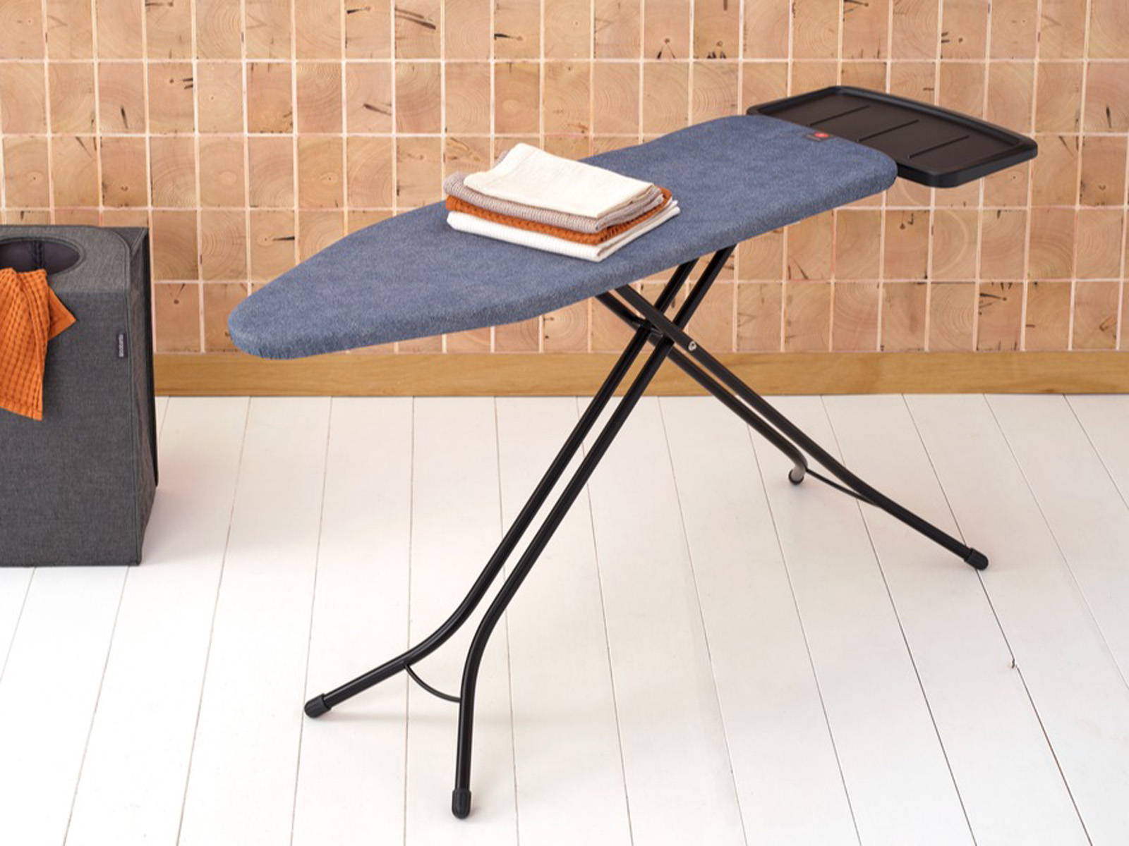 Elegancka wolnostojąca deska do prasowania w rozmiarze B z boczną podstawką na generator pary.