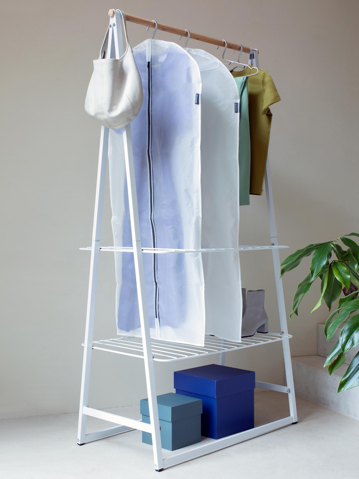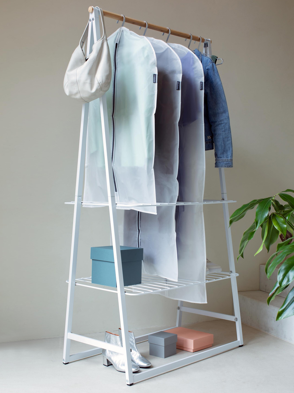 Zestaw pokrowców to estetyczne rozwiązanie chroniące zawieszone na wieszakach ubrania podczas przechowywania w szafie oraz podczas podróży.
