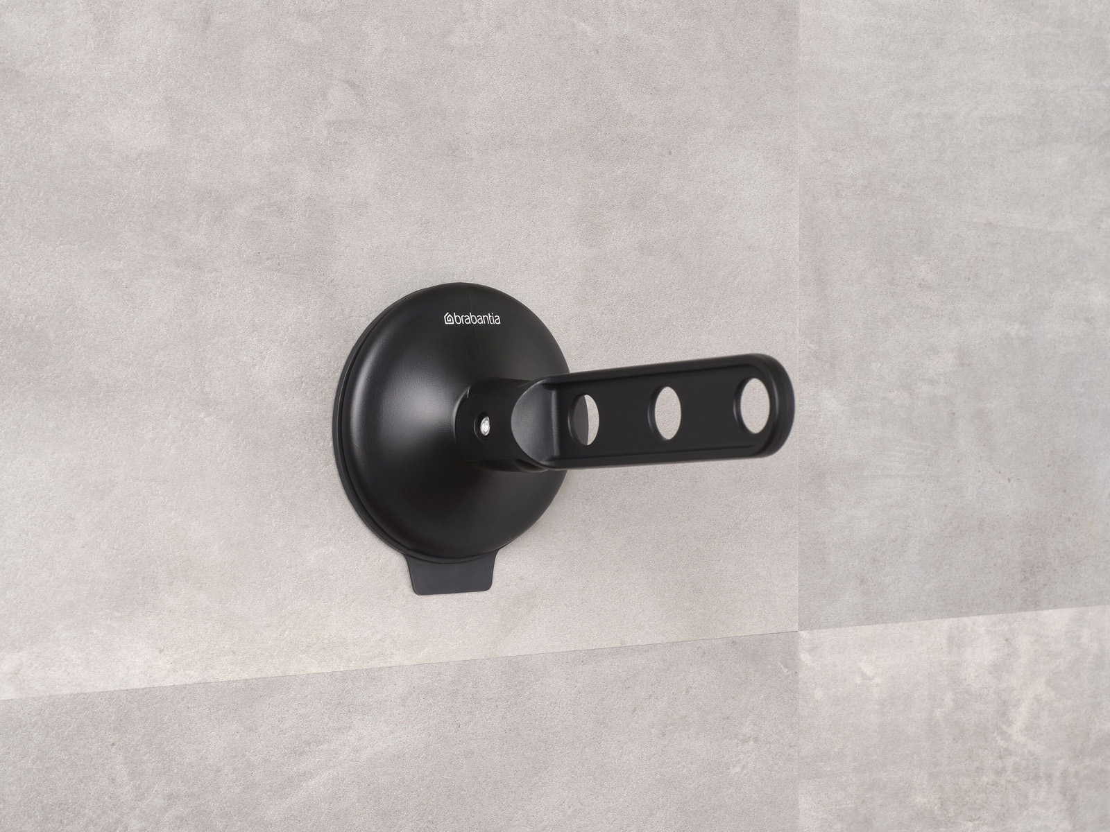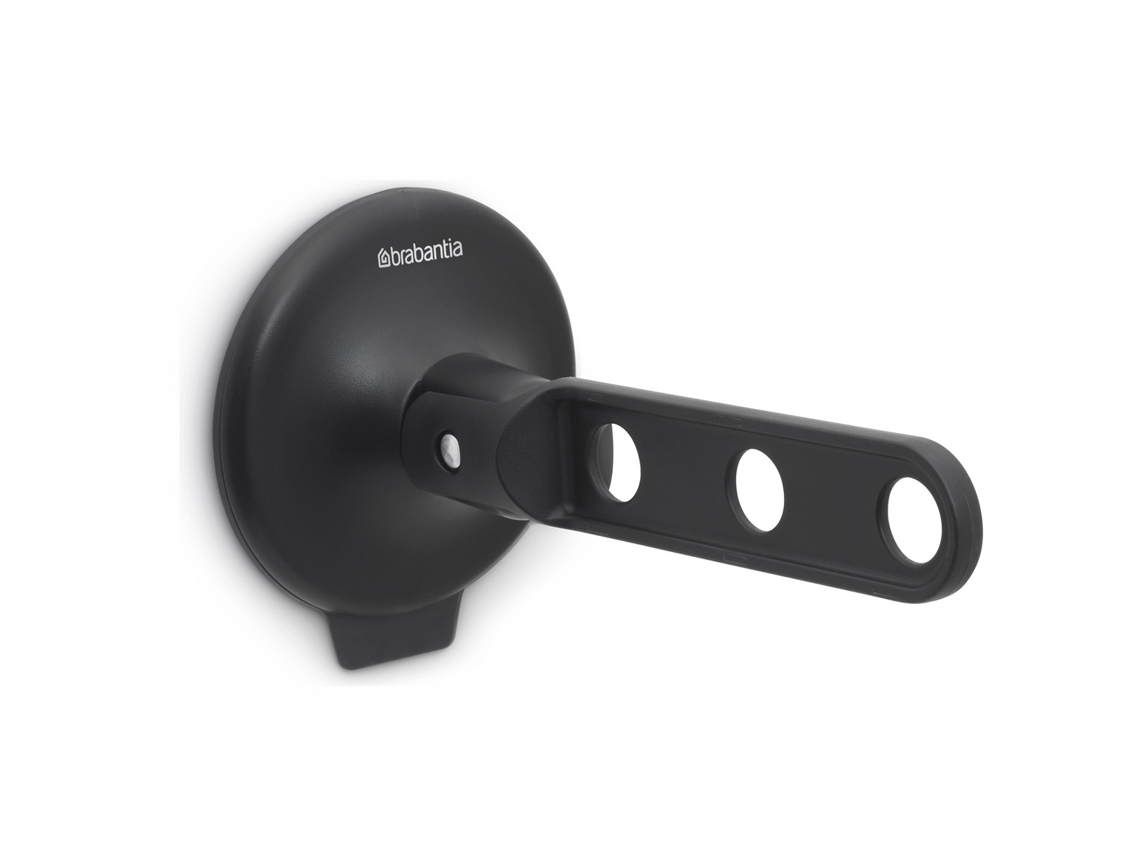 Uchwyt wykonany z tworzywa sztucznego pochodzącego z recyklingu, ze składanym ramieniem z 3 otworami na haczyki wieszaków.