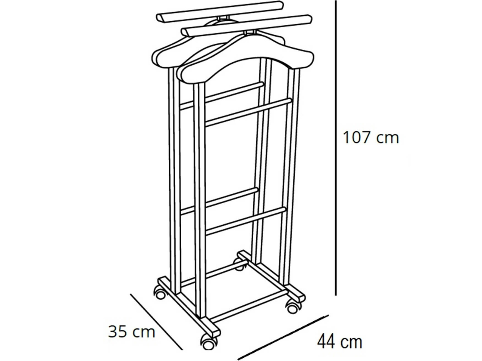 Drewniane stojaki Arredamenti są eleganckimi elementami wyposażenia, które dbają o nienaganny, wyjściowy wygląd ubrań, butów i garniturów. Stojak Clever wykonany z litego drewna bukowego zapewnia wysoką stabilność i trwałość. Wyposażony w 2 wyprofilowane wieszaki na koszule lub marynarki oraz 2 uchwyty na spodnie, ułatwia codzienną organizację garderoby. Sama podstawa stojaka może posłużyć jako miejsce dla butów. Gumowe kółka umożliwiają swobodne przemieszczanie akcesorium pomiędzy pomieszczeniami. Wszystko to we włoskim stylu o naturalnym, drewnianym charakterze.