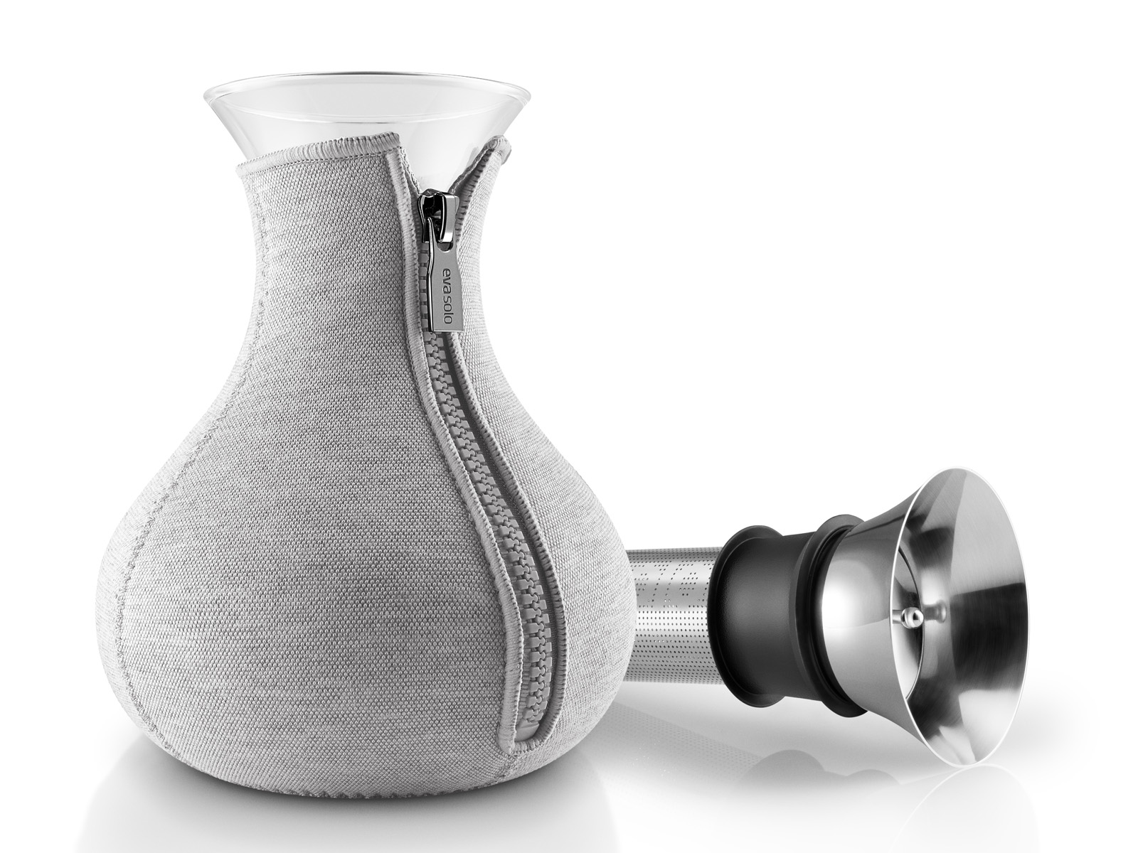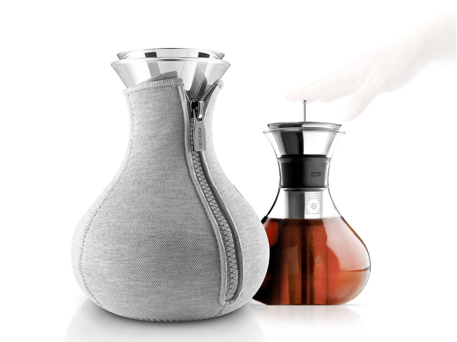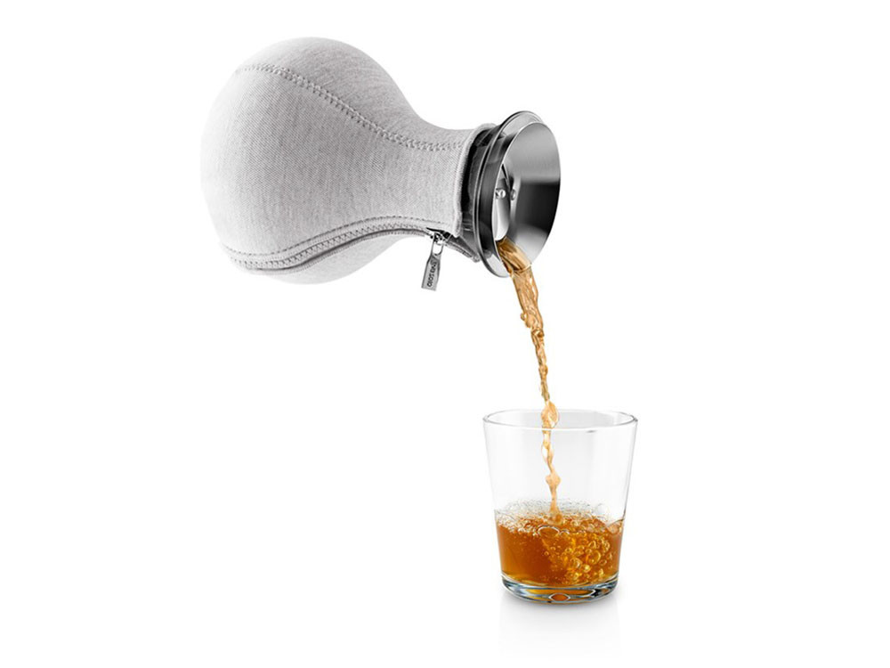 Szklany pojemnik dzbanka otulony jest miękkim i sprężystym neoprenowym pokrowcem izolującym, który spełnia dwie funkcje - pozwala zatrzymać na dłużej ciepło przygotowanego napoju oraz zabezpiecza dłonie przed wysoką temperaturą.