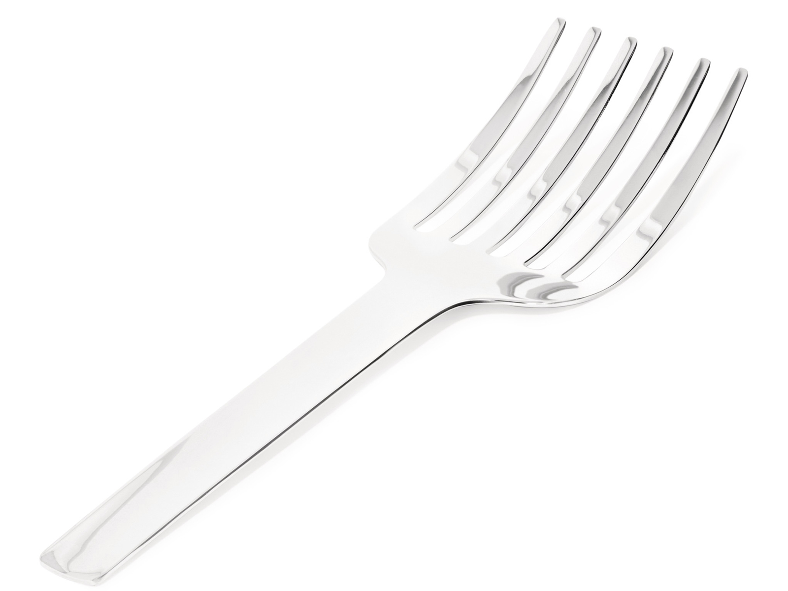 Przemyślana forma widelca sprawia, że doskonale odnajduje się nie tylko podczas codziennych posiłków, ale i świątecznych uroczystości. Szeroki kształt z 6 zębami oraz smukły uchwyt zapewniają wygodny chwyt i kontrolę podczas nakładania porcji na talerz. Polerowana do efektu lustra powierzchnia ze stali nierdzewnej 18/10 sprawia, że całość zyskuje na wyrafinowanej elegancji.