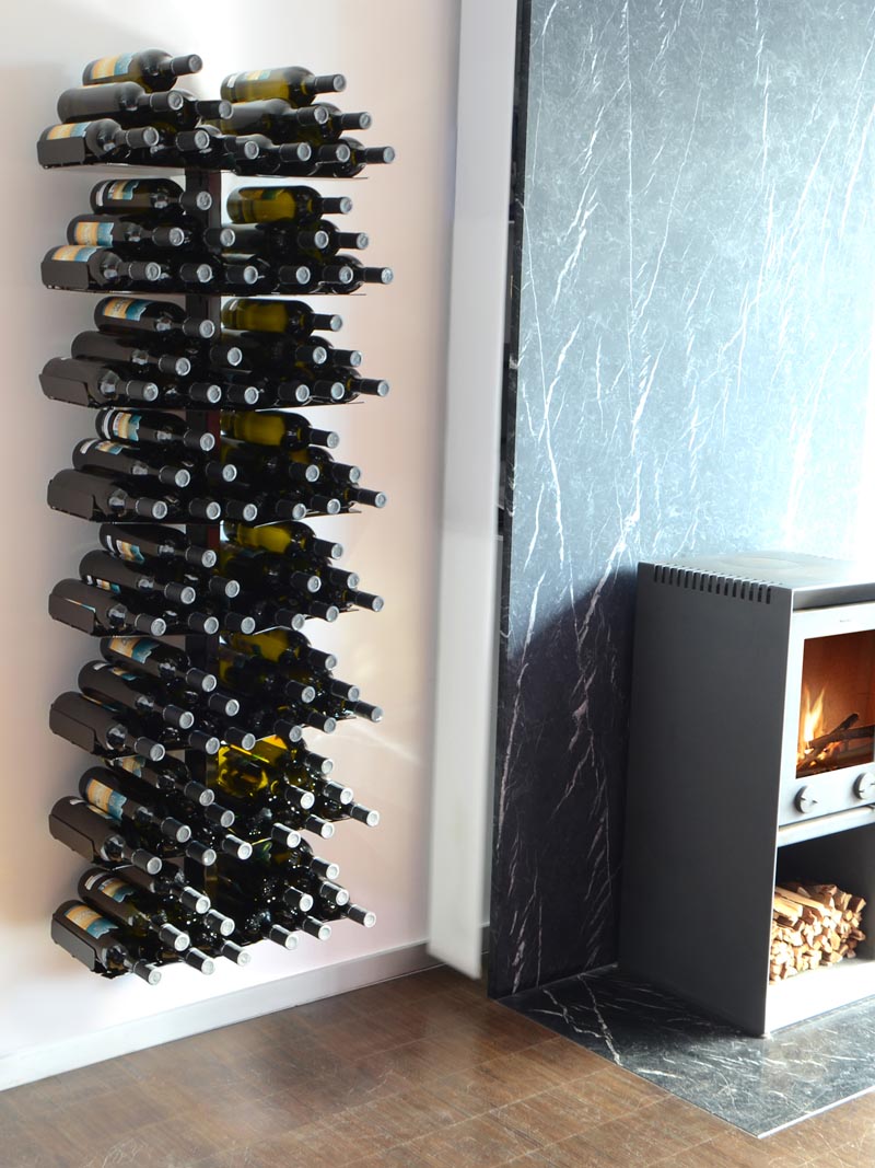 Wieszak posiada 16 półek i może pomieścić do 96 butelek wina. Maksymalne obciążenie półki to 8,2 kg, co odpowiada 6 butelkom wina.