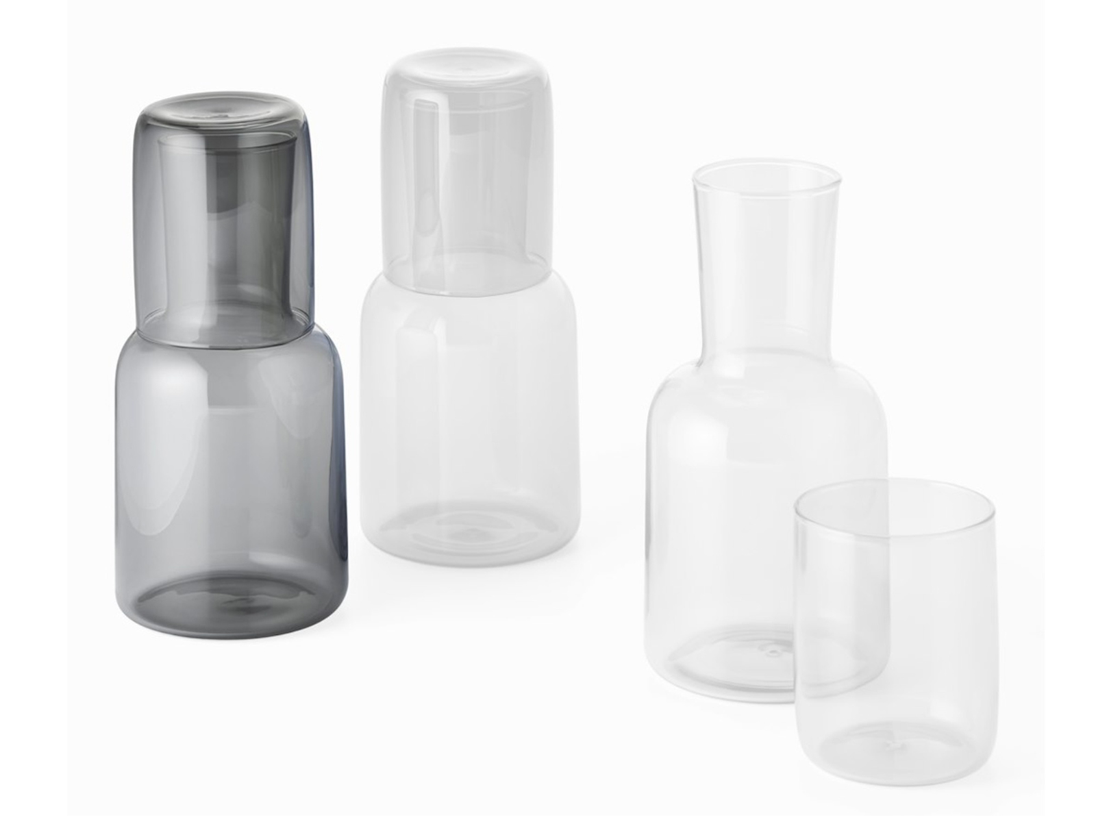 Zestaw karafki ze szklanką z serii Viva to komplet eleganckiego szkła przeznaczonego do podawania wody, soku lub innych napojów. Uniwersalna, nowoczesna forma sprawia, że naczynia dobrze prezentują się w przestrzeni domowej, biurowej, a także hotelowej. Nieduża karafka wykonana z dmuchanego, barwionego szkła pozwala na wygodne przechowywanie oraz serwowanie z zachowaniem oryginalnej kolorystyki. Dopasowana stylistycznie szklanka pełni jednocześnie funkcję praktycznej pokrywki.