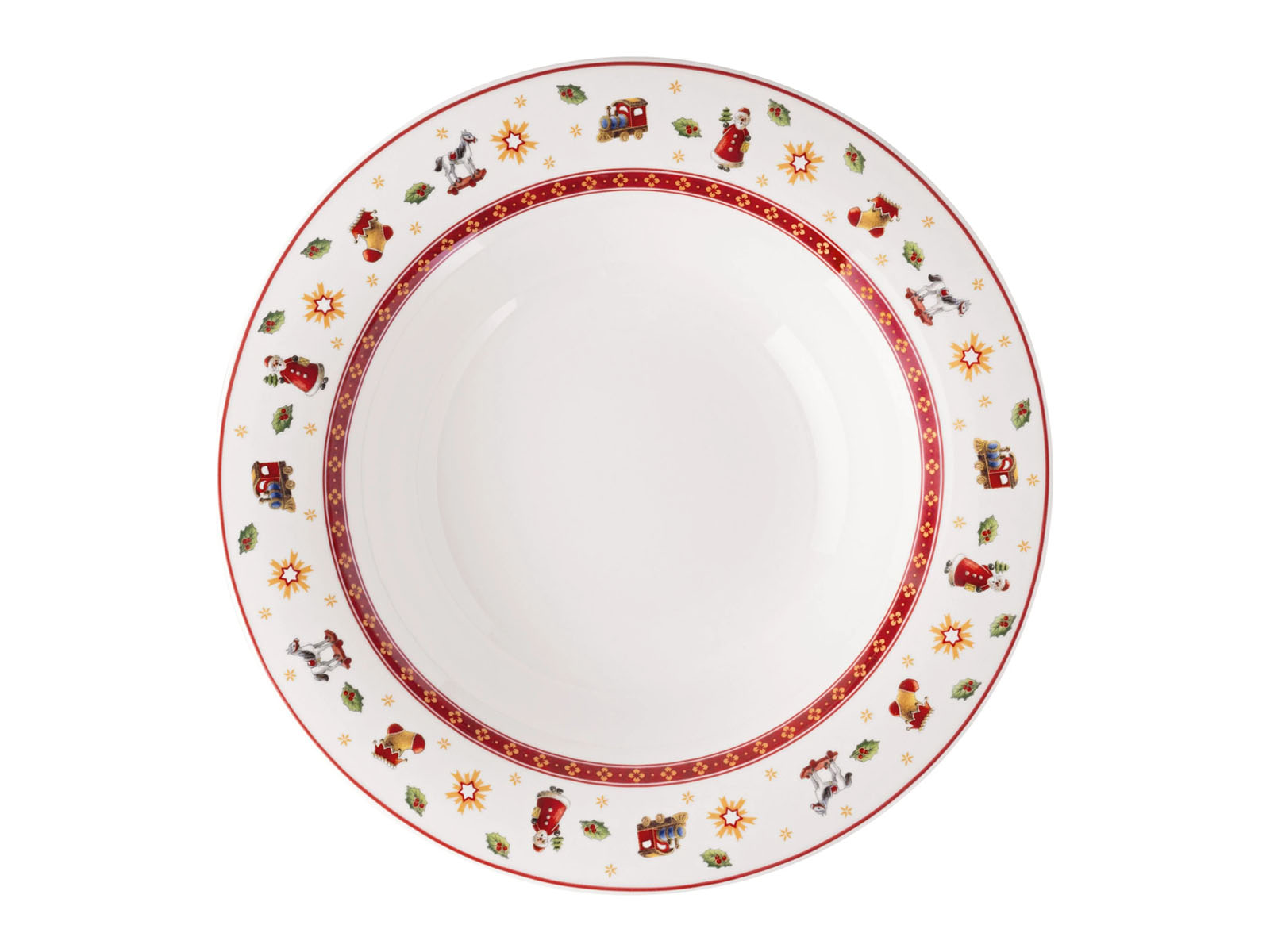 Villeroy&Boch Toy's Delight to wyjątkowo świąteczna bożonarodzeniowa kolekcja niezwykle eleganckiej zastawy stołowej wykonanej z najwyższej jakości porcelany. Stylistyczną inspiracją kolekcji jest magiczny świat świątecznych wspomnień. Zdobią ją ręcznie malowane motywy inspirowane klasycznymi zabawkami i scenami bożonarodzeniowymi, takimi jak uśmiechnięte misie, konie na biegunach czy drewniane pociągi. Utrzymana w tradycyjnej palecie barw – czerwieni, zieleni i bieli – z subtelnymi złotymi akcentami, tworzy ciepłą, elegancką atmosferę. Dzięki różnorodnym elementom, od talerzy po ozdoby stołowe, umożliwia stworzenie harmonijnej świątecznej aranżacji.