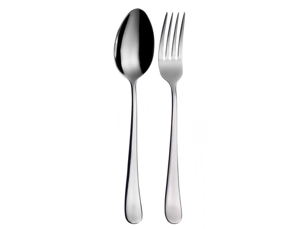 Elegancki zestaw sztućców do serwowania z serii Settimocielo składający się z dużej łyżki i widelca.
