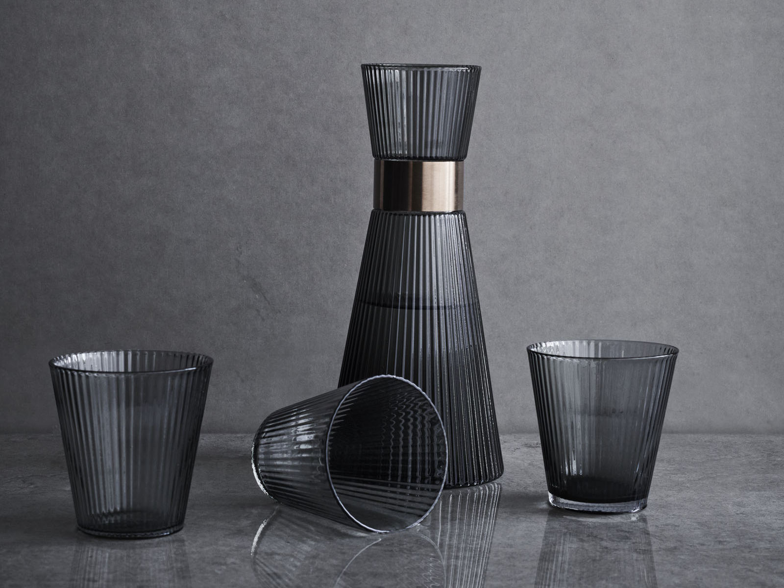 Prezentowana karafka sprawdzi się do podawania przede wszystkim zimnych napojów. Zwężenie ozdobione stalową obręczą nadaje karafce lekkości i elegancji, a jednocześnie ogranicza wypadaniu kostek lodu lub owoców podczas nalewania.