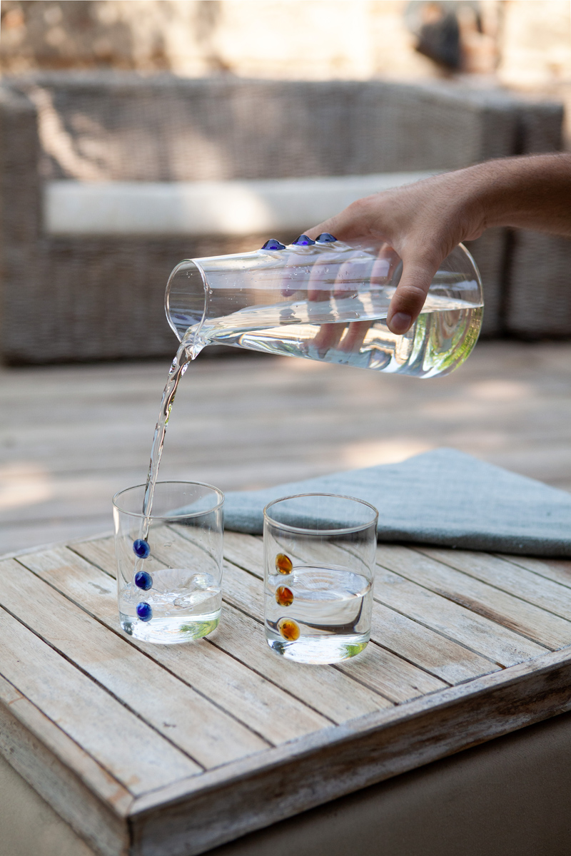 Kolekcja szkła stołowego Petoni składająca się ze szklanek i karafek została ręcznie wykonana z wysokojakościowego szkła borokrzemowego, które nadaje szkłu blasku i trwałości.