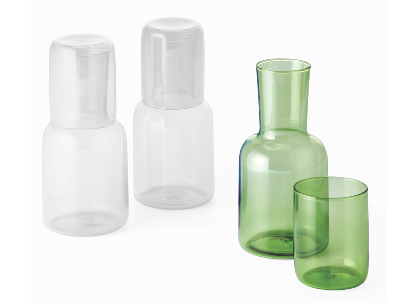 Zestaw karafki ze szklanką z serii Viva to komplet eleganckiego szkła przeznaczonego do podawania wody, soku lub innych napojów. Uniwersalna, nowoczesna forma sprawia, że naczynia dobrze prezentują się w przestrzeni domowej, biurowej, a także hotelowej. Nieduża karafka wykonana z dmuchanego, barwionego szkła pozwala na wygodne przechowywanie oraz serwowanie z zachowaniem oryginalnej kolorystyki. Dopasowana stylistycznie szklanka pełni jednocześnie funkcję praktycznej pokrywki.