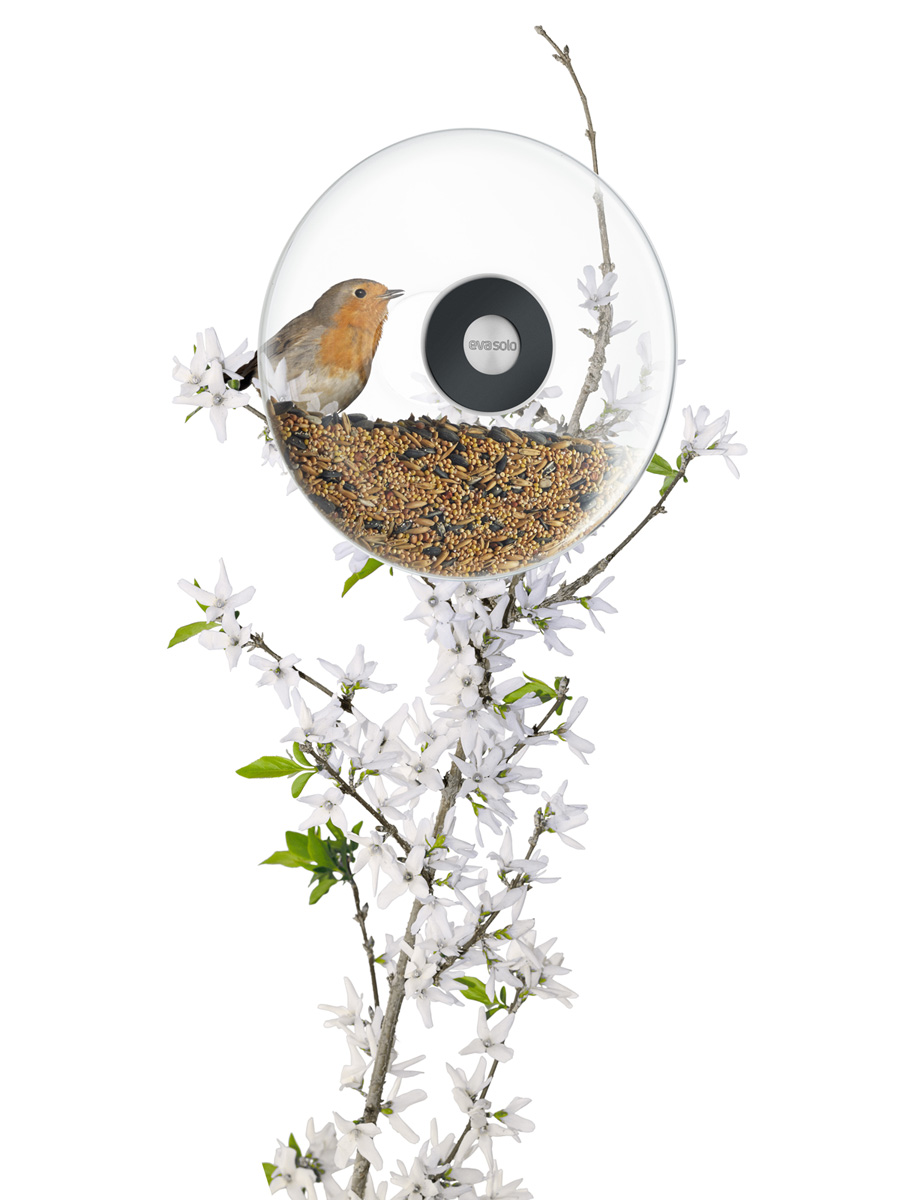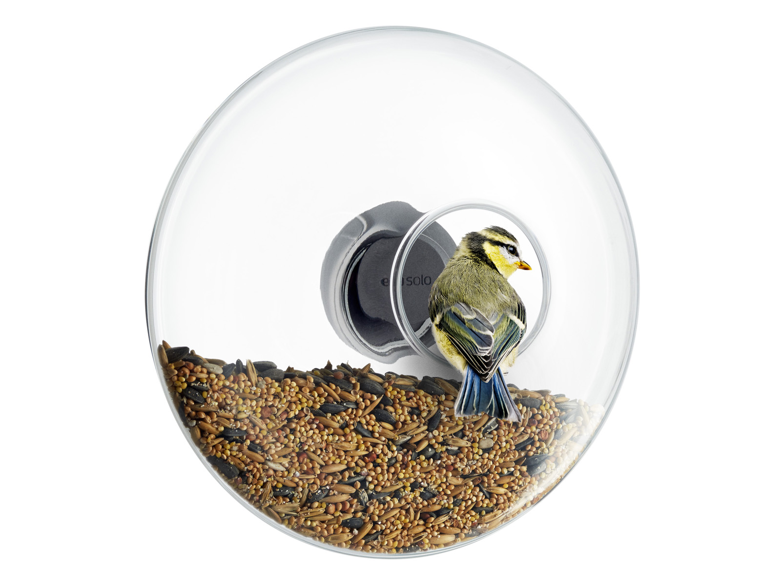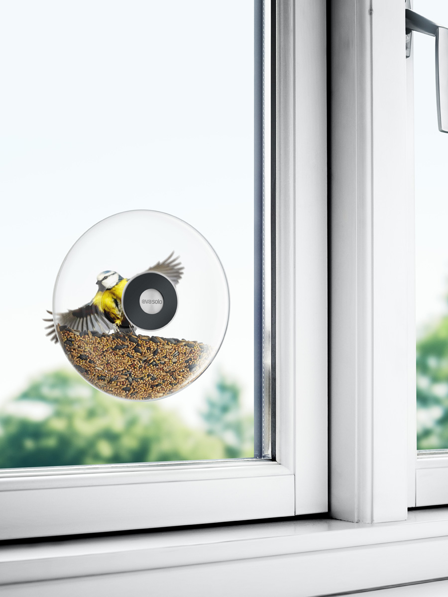 Szklany pojemnik ułatwia kontrolę ilości karmy w karmniku, a mocowany na oknie daje wyjątkową okazją do obserwowania pierzastych przyjaciół podczas karmienia.