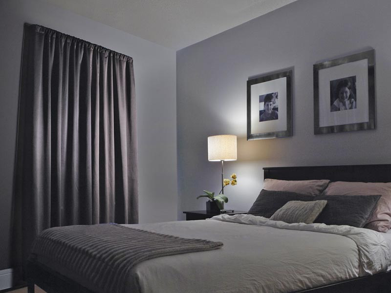 Solidny karnisz z konstrukcją umożliwiającą szczelne przyleganie zasłon do ściany, zapewnia zaciemnienie i wyciszenie pomieszczenia oraz ogranicza nagrzewanie pomieszczenia przez słońce.