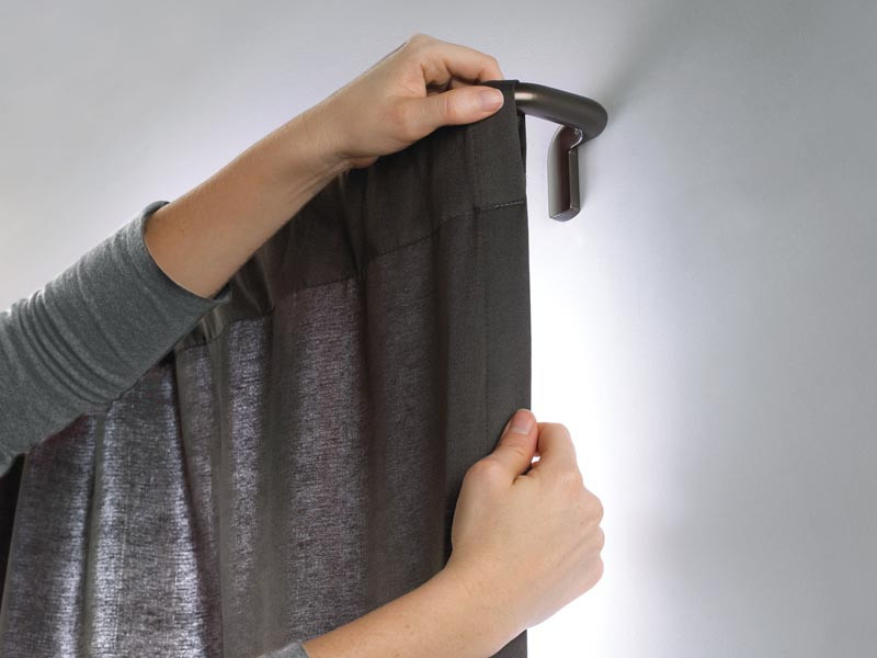 Poprzeczka karnisza o średnicy 1,9 cm zakończona po obu stronach wygięciem, które zapewnia zaciągniecie zasłon do samej ściany.