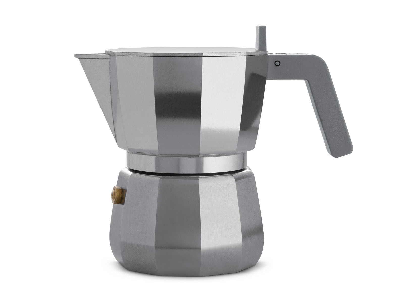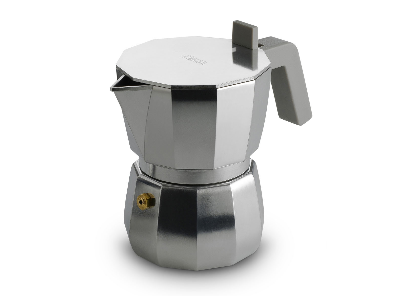 Projekt kawiarki, podobnie jak każdy projekt Alessi, w niebywały sposób łączy efektowną kompozycję z klasyczną i praktyczną funkcjonalnością