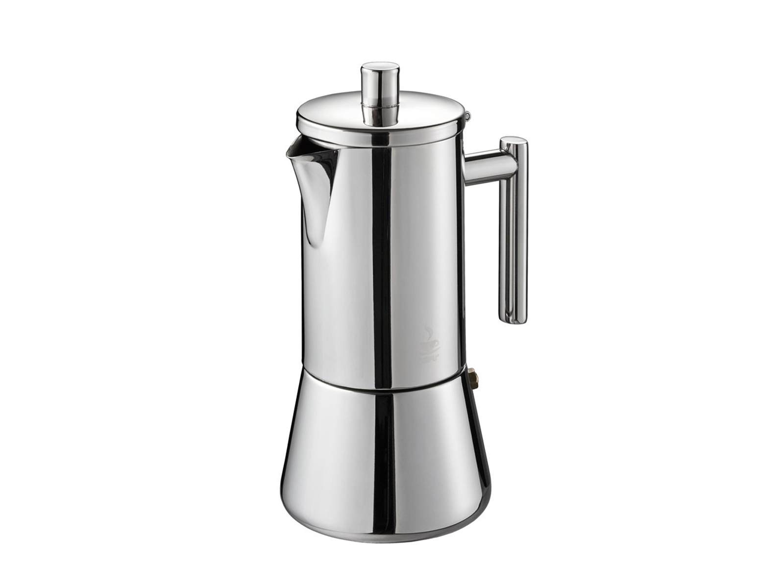 Kawiarka GEFU Nando jest eleganckim naczyniem inspirowanym włoską tradycją parzenia kawy. Wystarczy wlać wodę, wsypać zmielone ziarna i podgrzać na kuchence, aby po chwili cieszyć się aromatycznym espresso. Dzięki dołączonemu sitku można przygotować także mniejszą porcję kawy, nawet z połowy ziaren. To uniwersalne stalowe akcesorium jest kompatybilne z wszystkimi rodzajami kuchenek, w tym indukcyjnymi, i nadaje się do mycia w zmywarce.