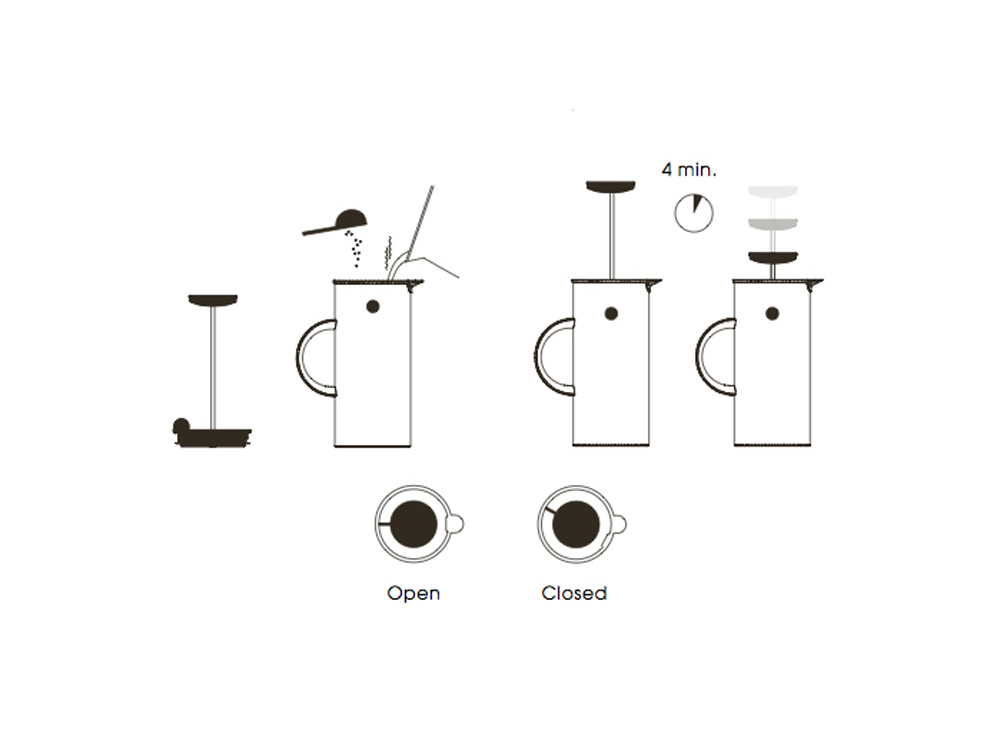 Dzbanek do zaparzania kawy EM jest jednym z elementów tworzących wspaniałą i klasyczną kolekcję akcesoriów jadalniano-kuchennych zaprojektowanych przez Erika Magnussena.