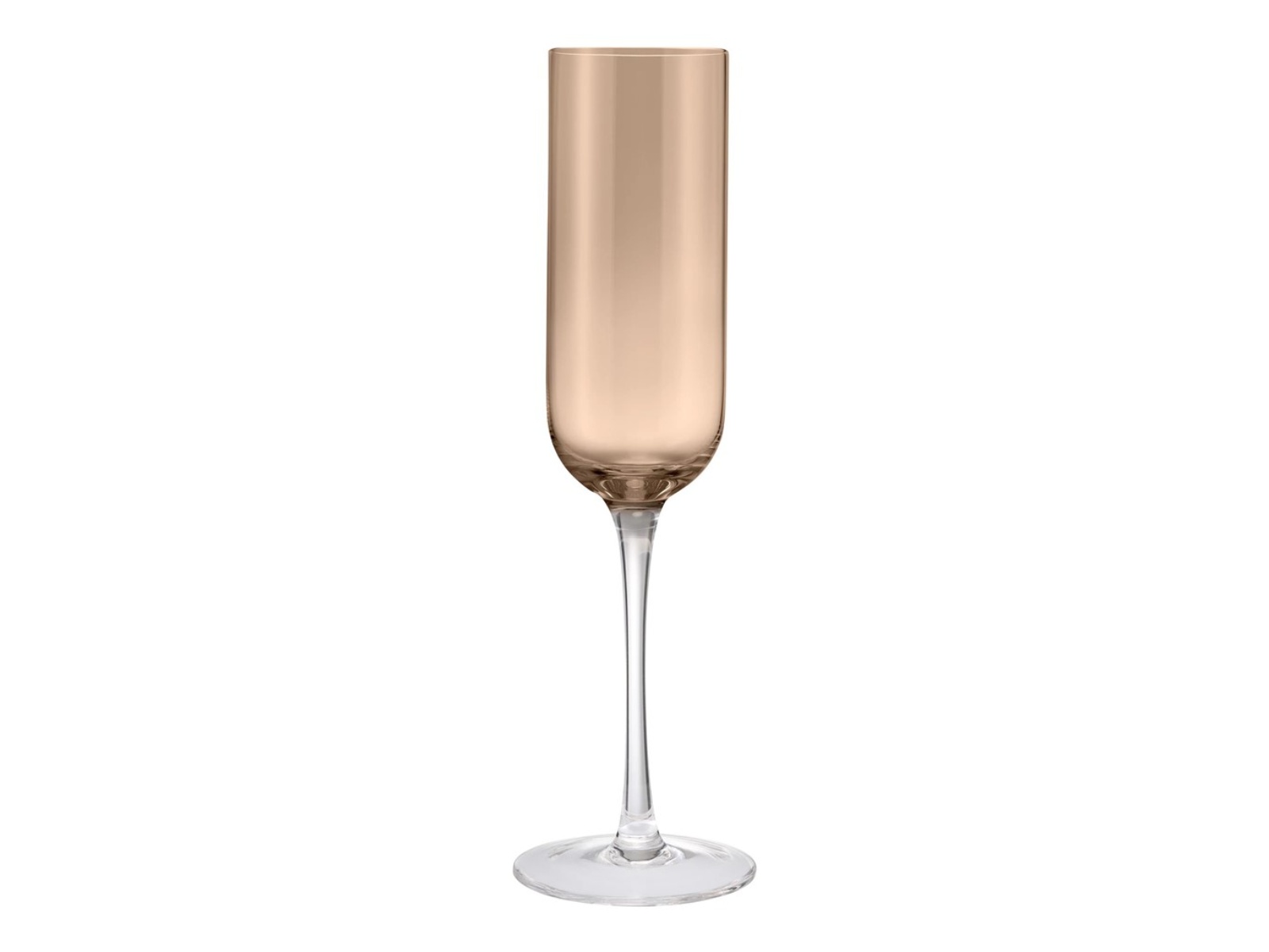 Szklany korpus ma jednolity kolor o barwie brązowej bądź dymnej, który nadaje całości subtelnego, dekoracyjnego charakteru. Delikatna, przezroczysta nóżka kontrastuje z barwionym szkłem, podkreślając lekkość i elegancję.