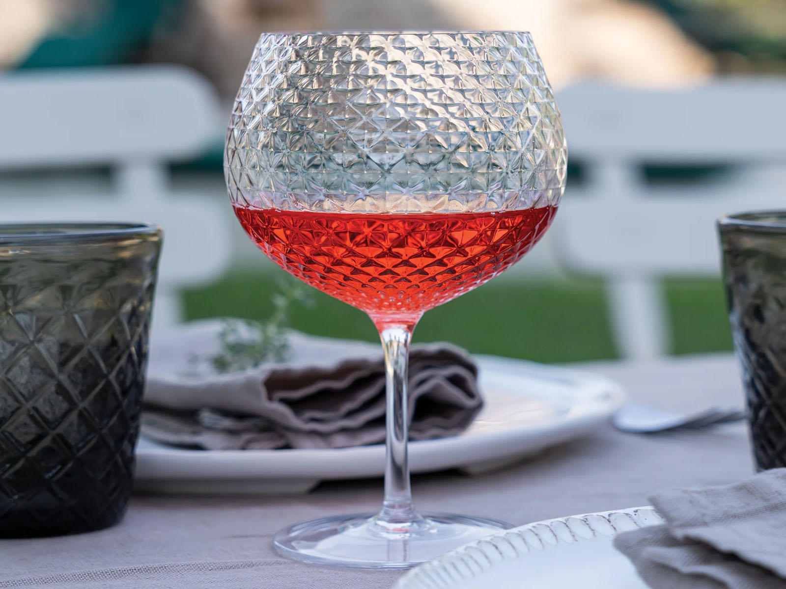 Zafferano Mixology Veneziano to przepiękna kolekcja szkła stołowego, zaprojektowana przez Federica de Majo i przeznaczona przede wszystkim do drinków i koktajli mieszanych. Stylistycznie kolekcja inspirowana była bogato zdobionym szkłem wywodzącym się z tradycji weneckiej, Piękny regularnie tłoczony wzór daje niesamowite efekty podczas gry światła i kolorowych drinków.