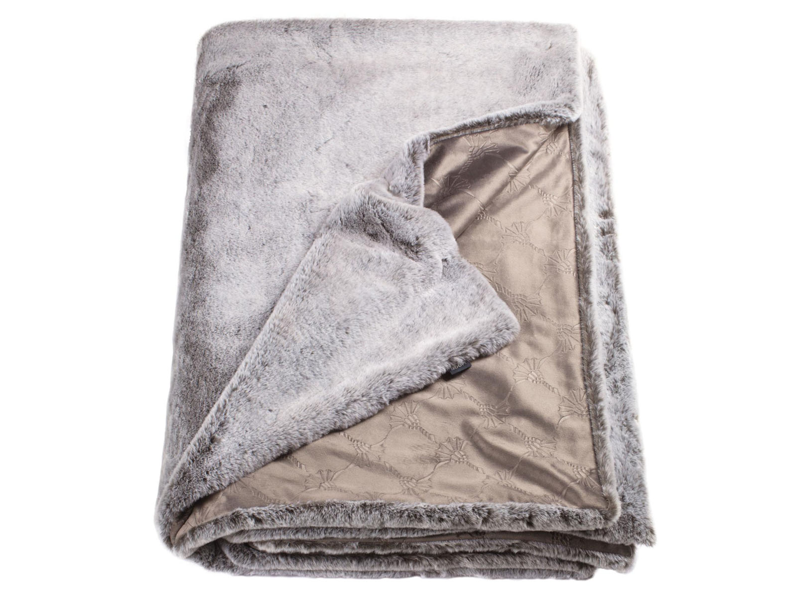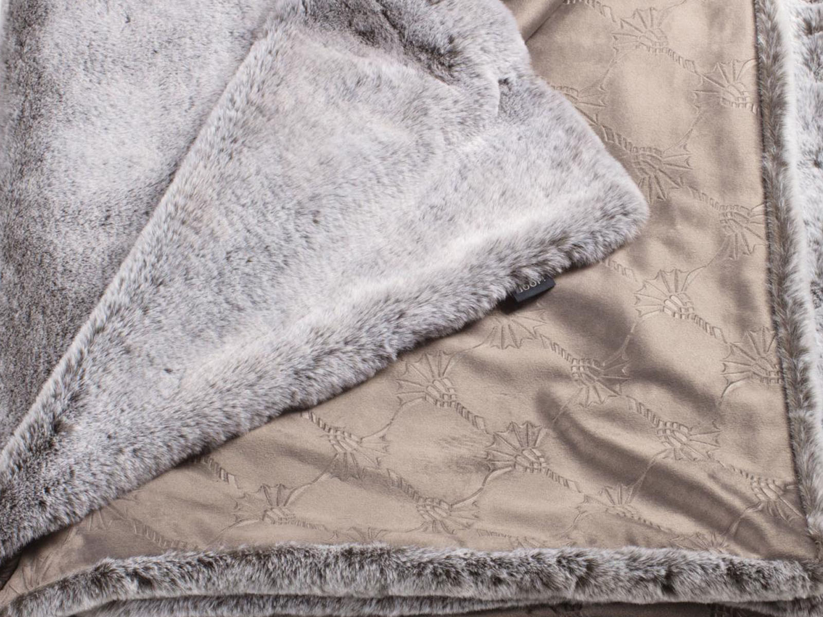 Wierzchnia część koca wykonana jest z wysokogatunkowych mikrowłókien poliestrowych idealnie imitujących naturalne futro zwierzęce, spód zaś z niezwykle delikatnego aksamitnego w dotyku zamszu z wzorem Joop.