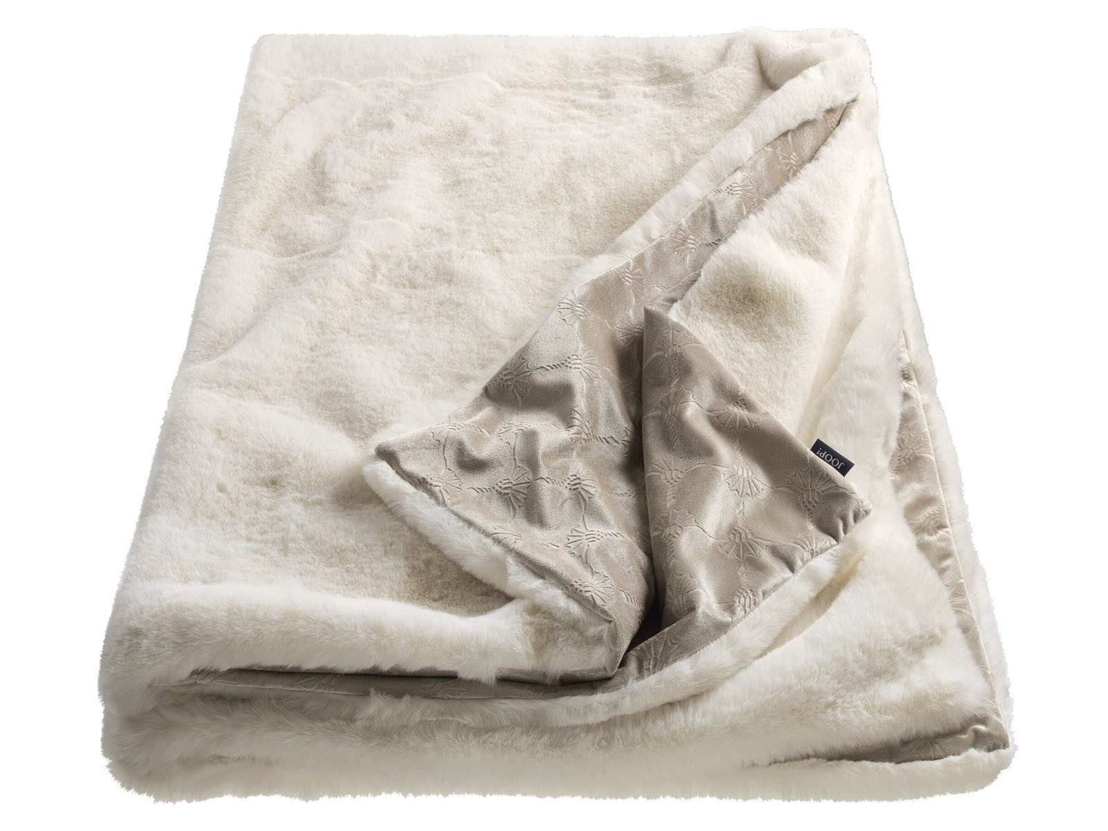 Wierzchnia część koca wykonana jest z wysokogatunkowych mikrowłókien poliestrowych idealnie imitujących naturalne futro zwierzęce, spód zaś z niezwykle delikatnego aksamitnego w dotyku zamszu z wzorem Joop.