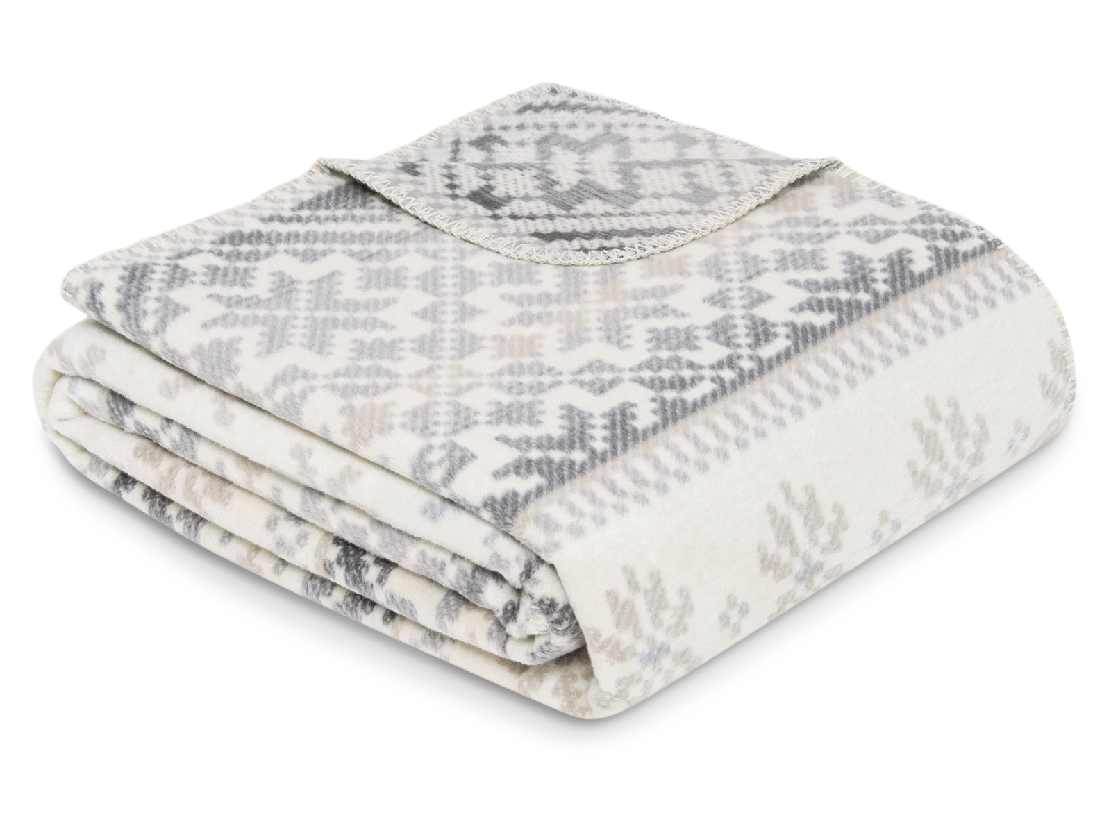 Koc wykończony jest ozdobnym ściegiem