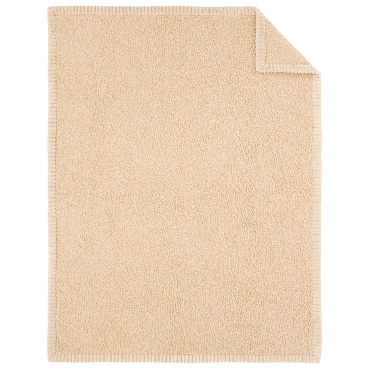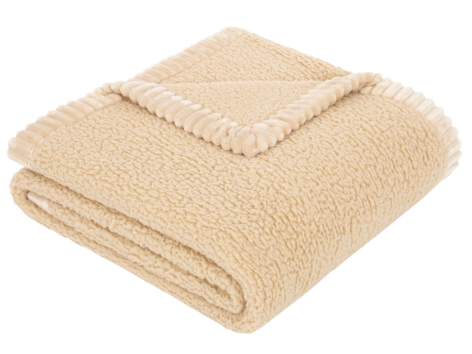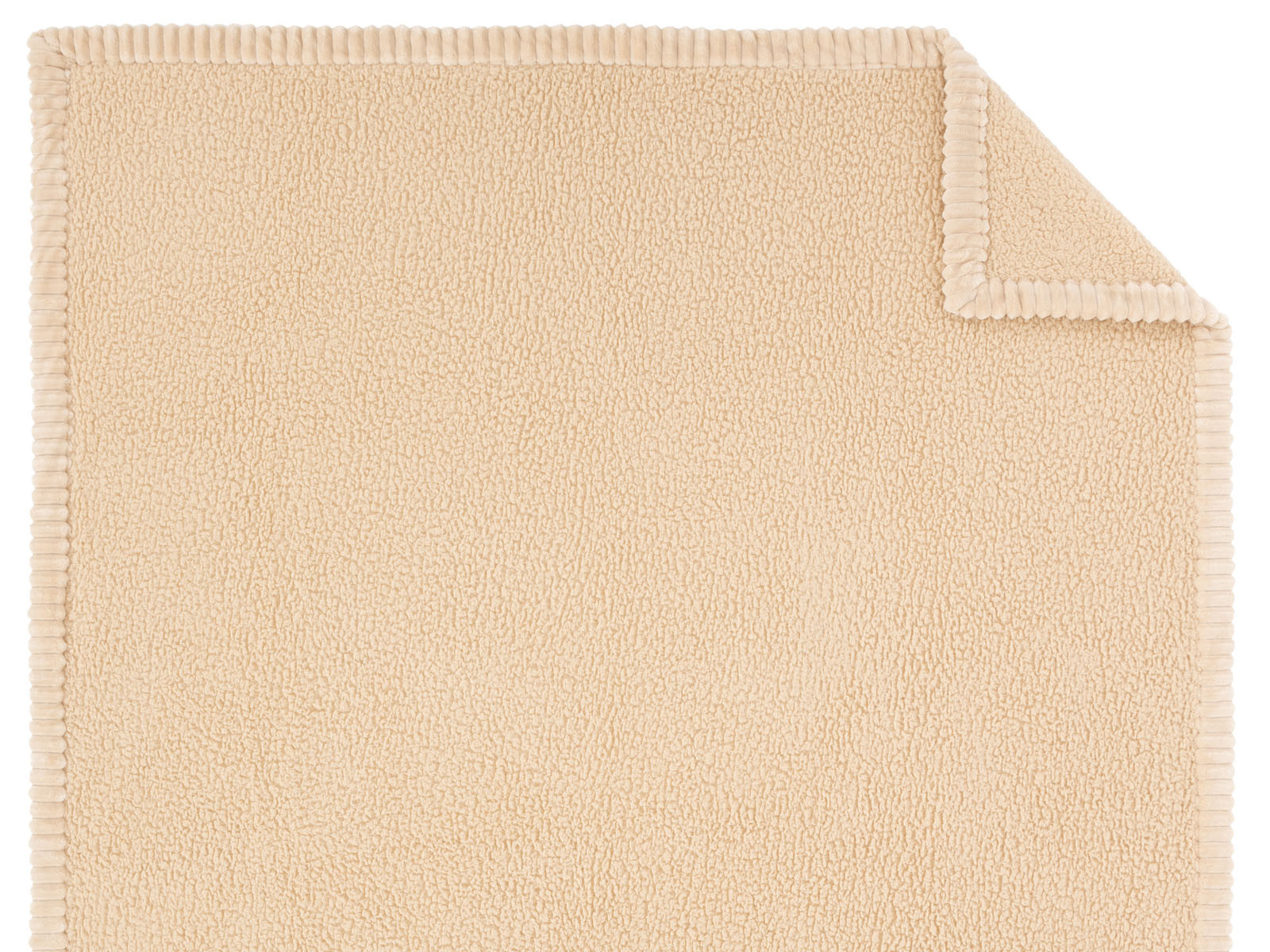Koc wykończony jest lamówką przypominająca gruby sztruks