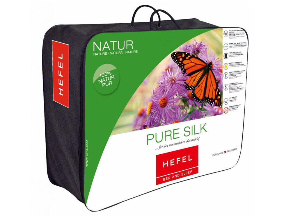 Pure Silk to kolekcja letnich kołder wykonanych z najwyższej jakości wyselekcjonowanego dzikiego jedwabiu. Kołdry jedwabne Pure Silk wykorzystują najważniejsze zalety jedwabiu , m.in. hypoalergiczność oraz wysoka zdolność pochłaniania wilgoci. Optymalną zdolność pochłaniania wilgoci gwarantuje również użycie pokrycia z najwyższej jakości włókna - Tencel® - materiał ten został sporządzony wyłącznie z celulozy drzewnej wytworzonej z czystej jakości drewna za pomocą przyjaznego dla środowiska procesu.