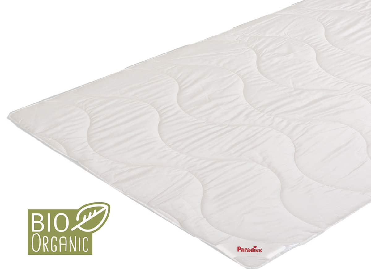 Paradies Cotton Summernight Organic to letnia kolekcja naturalnych kołder bawełnianych wykonanych w 100% z bawełny organicznej. Pokrycie kołdry to organiczna tkanina w 100% bawełniana uszlachetniona technologią Dryfix®, gwarantującą 10-krotnie większą zdolność wchłaniania wilgoci niż tradycyjne tkaniny bawełniane . Wypełnienie to również włókna organiczne w 100% bawełniane, wykonane technologii High-Loft® zapewniające puszystość oraz idealną cyrkulację powietrza i właściwą regulację wilgoci.