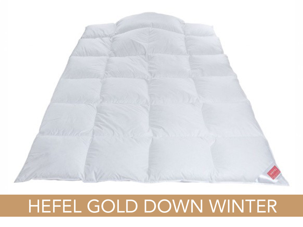Hefel Gold Down to jedna z flagowych kolekcji bardzo delikatnych i miłych w dotyku kołder puchowych wykonanych z najlepszego wyselekcjonowanego świeżego białego puchu gęsiego z puchoszczelnym pokryciem batystowym z bawełny egipskiej. Wypełnienie kołdry stanowi w 100% najlepszy ręcznie wyselekcjonowany świeży puch gęsi. Kołdra wykończona jest elegancką złotą bizą.