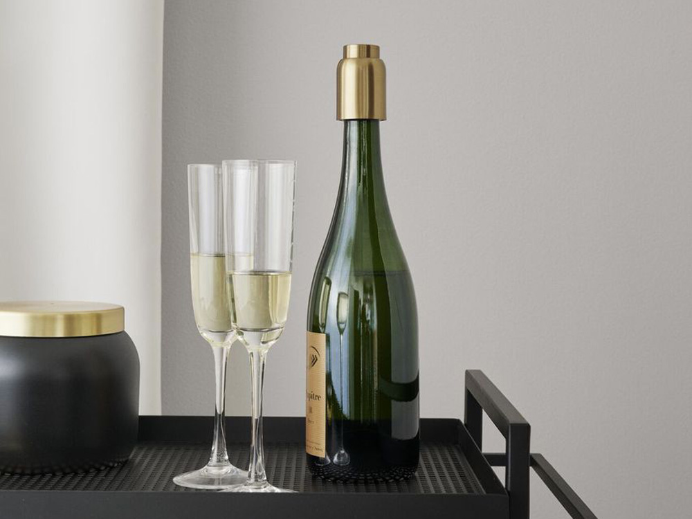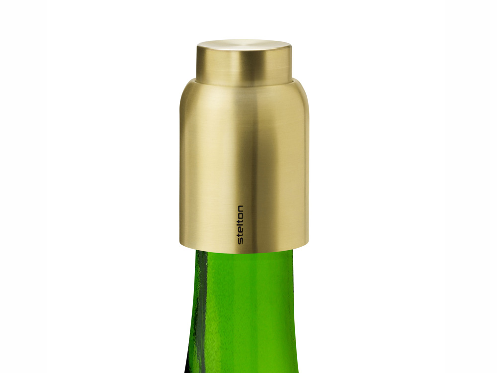 Elegancki i stylowy korek próżniowy do wina wykonany ze stali nierdzewnej powlekanej mosiądzem.