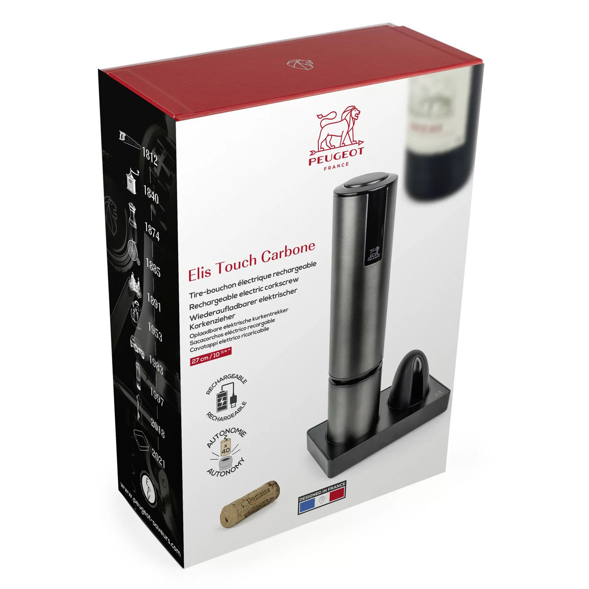 Peugeot Elis Touch to w pełni zautomatyzowany elektryczny korkociąg, dzięki któremu odkorkowywanie butelki wina staje się niezwykle łatwe. Korkociąg Elis Touch to nie tylko bardzo praktyczne i łatwe w użyciu narzędzie, to również bardzo elegancki i designerski element wyposażenia baru czy jadalni - korpus ze stali nierdzewnej uzupełniają elementy z wysokiej jakości tworzywa sztucznego..