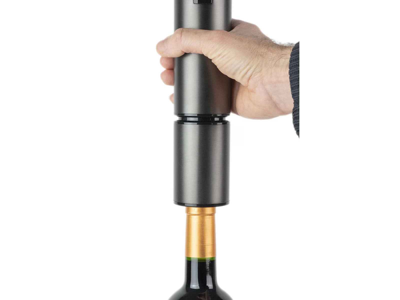 Korkociąg świetnie się sprawdzi w przypadku każdego rodzaju korka - czy to naturalnego czy też syntetycznego, a także w przypadku każdego rodzaju klasycznej butelki wina. Jedyne co trzeba zrobić to nałożyć korkociąg na szyjkę butelki i nacisnąć przycisk.