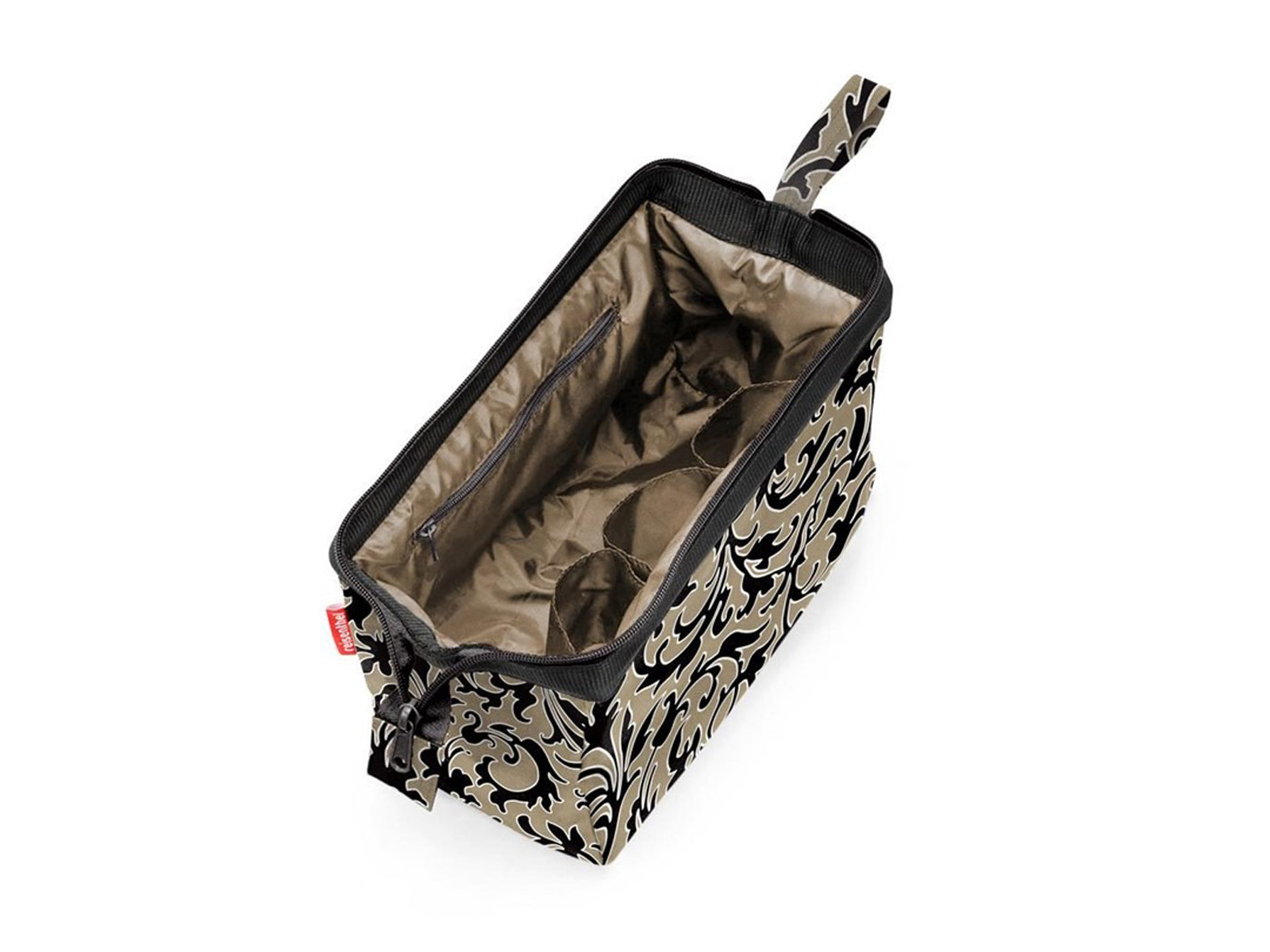 Travelcosmetic posiada zasuwaną główną komorę oraz dodatkową kieszeń w środku.