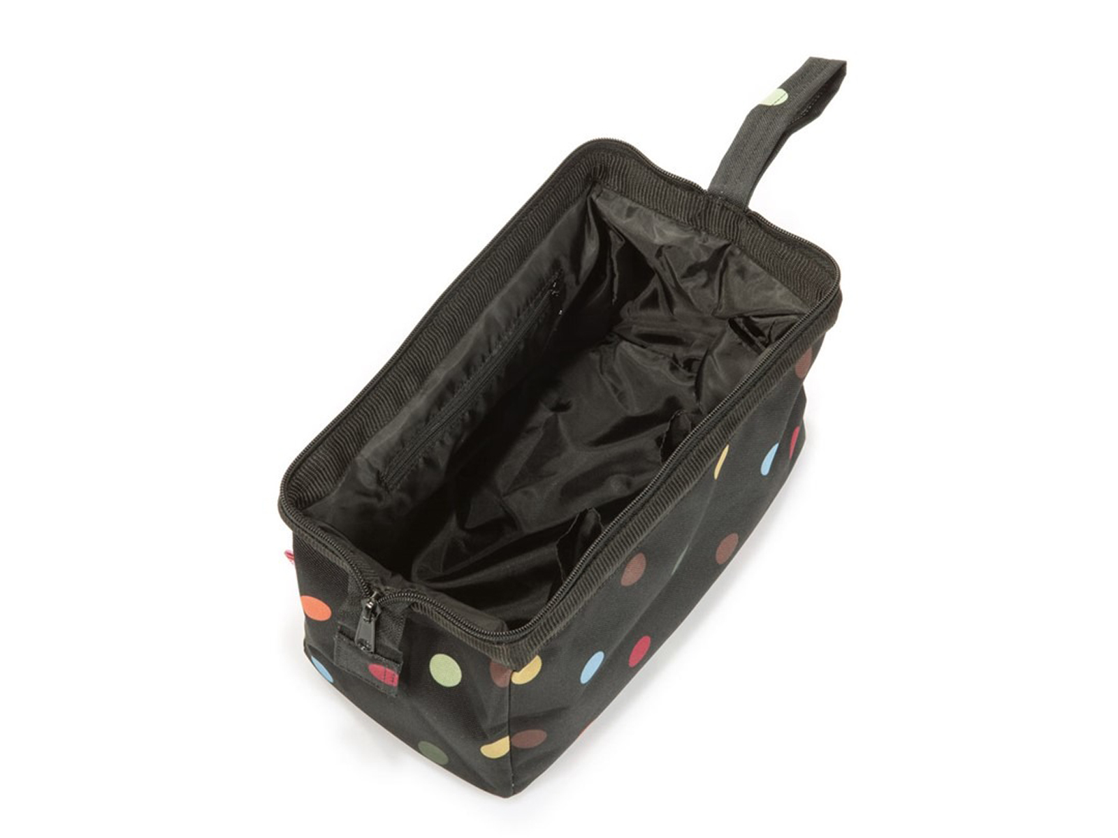 Travelcosmetic posiada zasuwaną główną komorę oraz dodatkową kieszeń w środku.