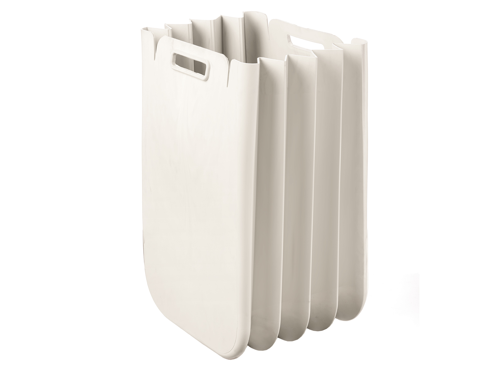 Guzzini EcoPackly to unikalne wielofunkcyjne składane kosze na suche śmieci, pranie/bieliznę oraz do przechowywania np. zabawek lub innych drobiazgów.stylistyce. Kształt kosza EcoPackly przypomina harmonijkę, dzięki czemu kosz świetnie się wkomponuje nie tylko w aranżację łazienki, ale również jako pojemnik w salonie, kuchni czy pokoju dziecięcym.