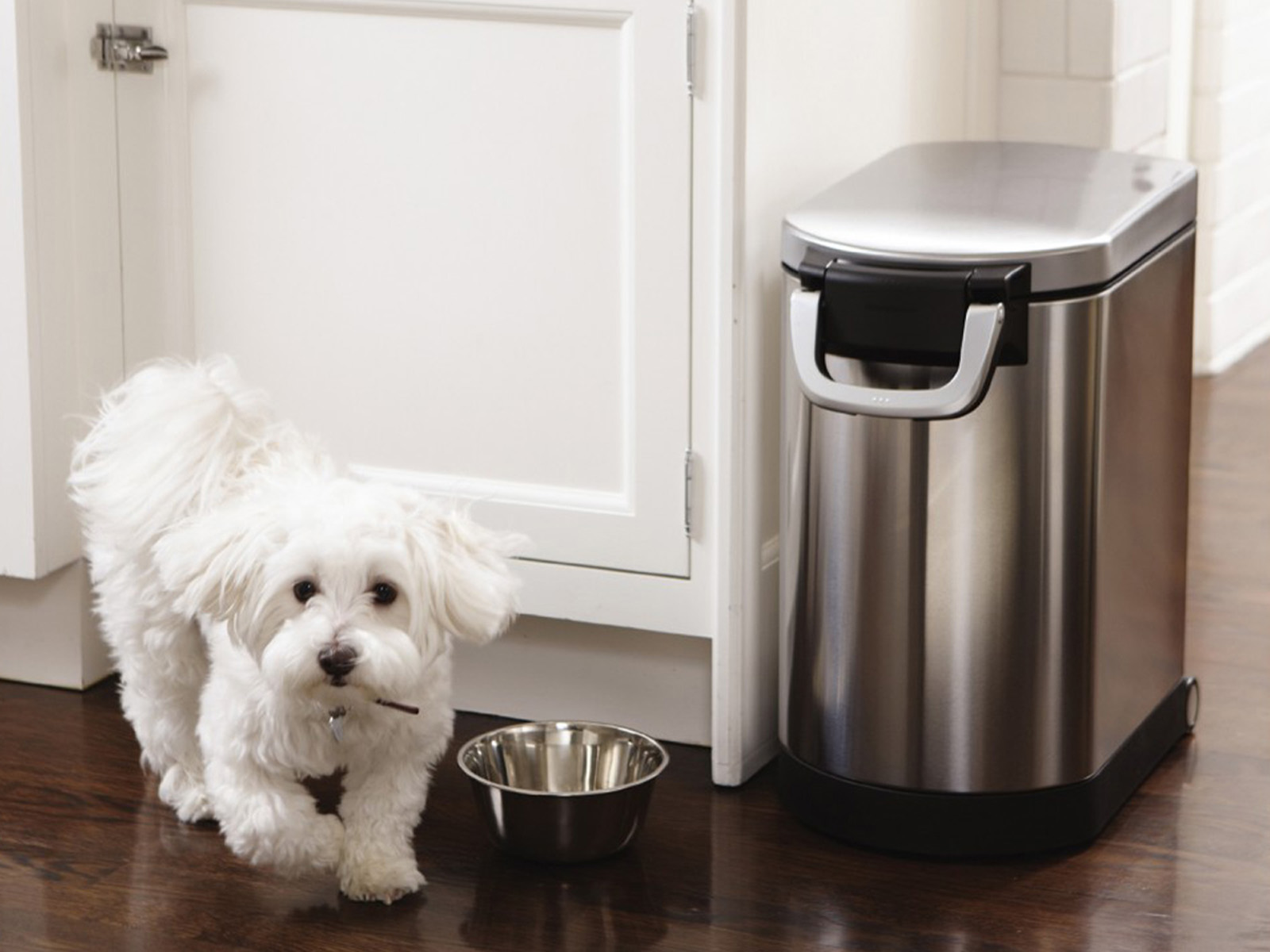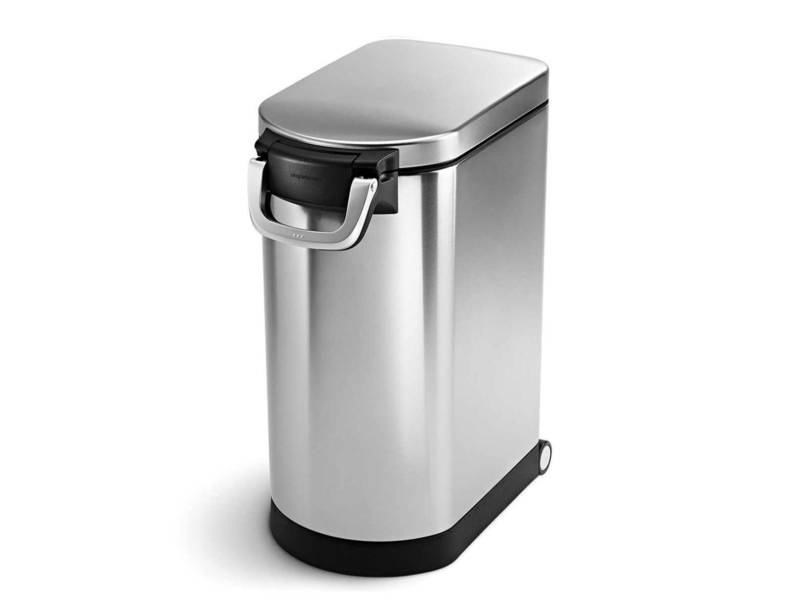 Praktyczny duży hermetyczny podłogowy kosz/ pojemnik do przechowywania karmy dla zwierząt oraz większej ilości innych produktów spożywczych takich jak np.: mąka, ryż, cukier.
