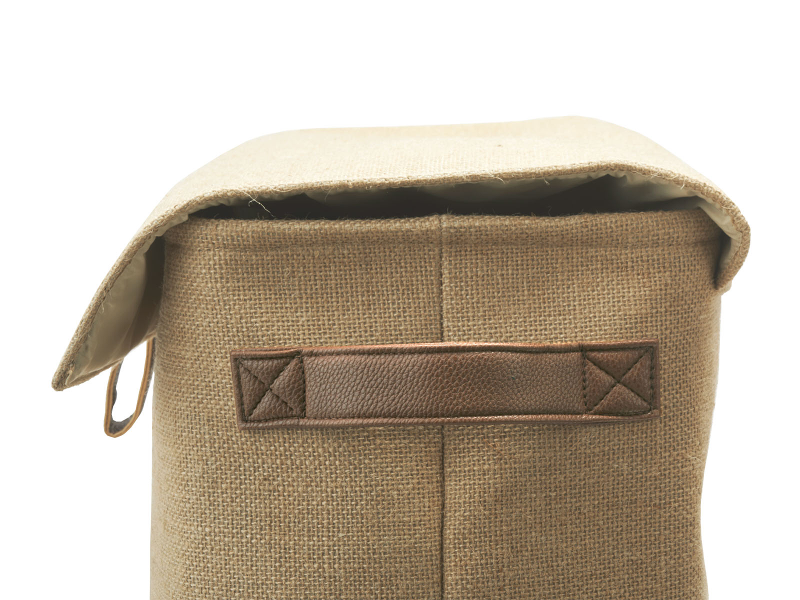 Na uwagę również zasługują również dodatki z ekoskóry, a mianowicie uchwyt do podnoszenia klapy, uchwyty do przenoszenia oraz narożniki dolne wzmacniające konstrukcję i zwiększające trwałość kosza.
